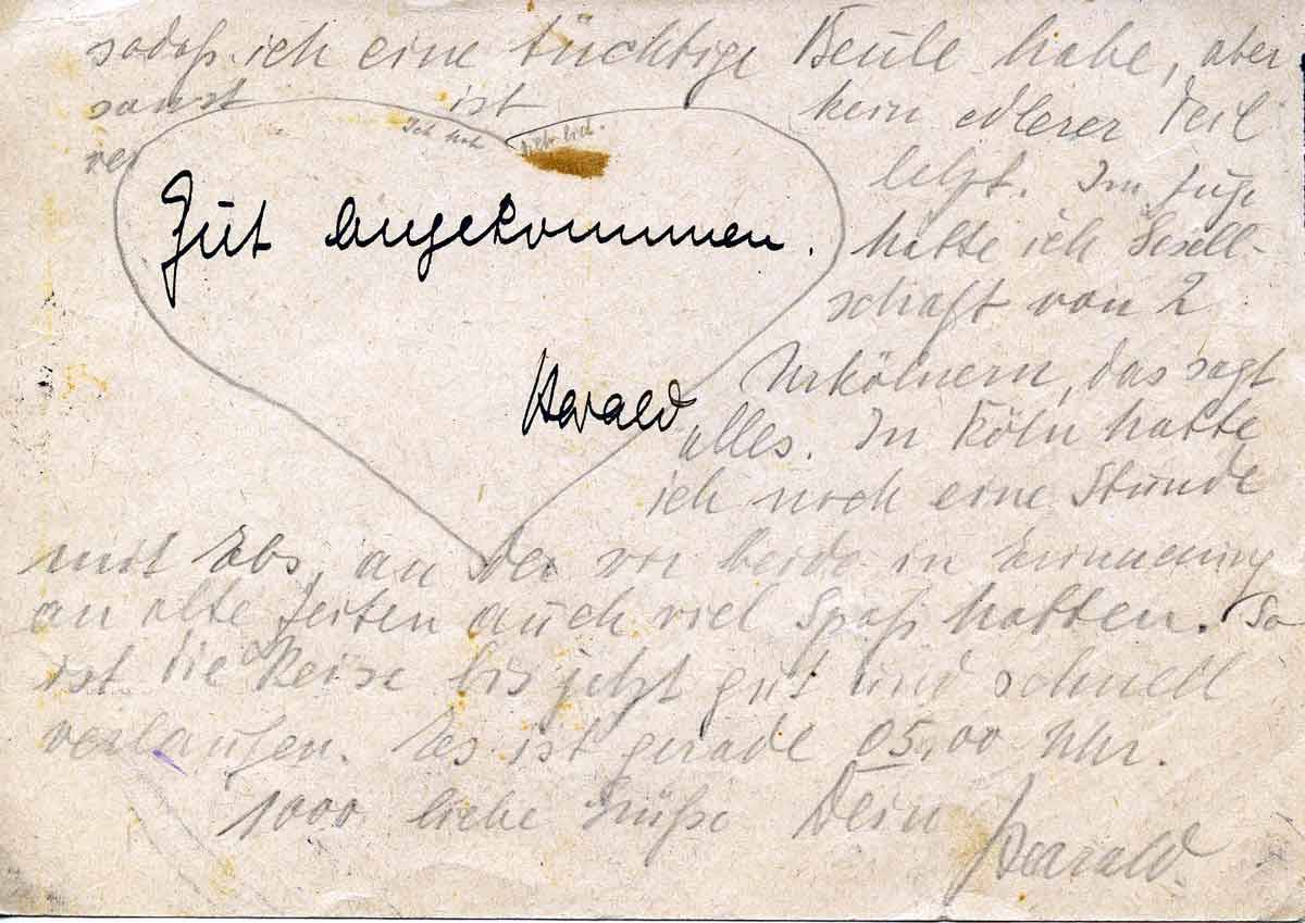 [großes gemaltes Herz, darin:] Gut angekommen. Harald