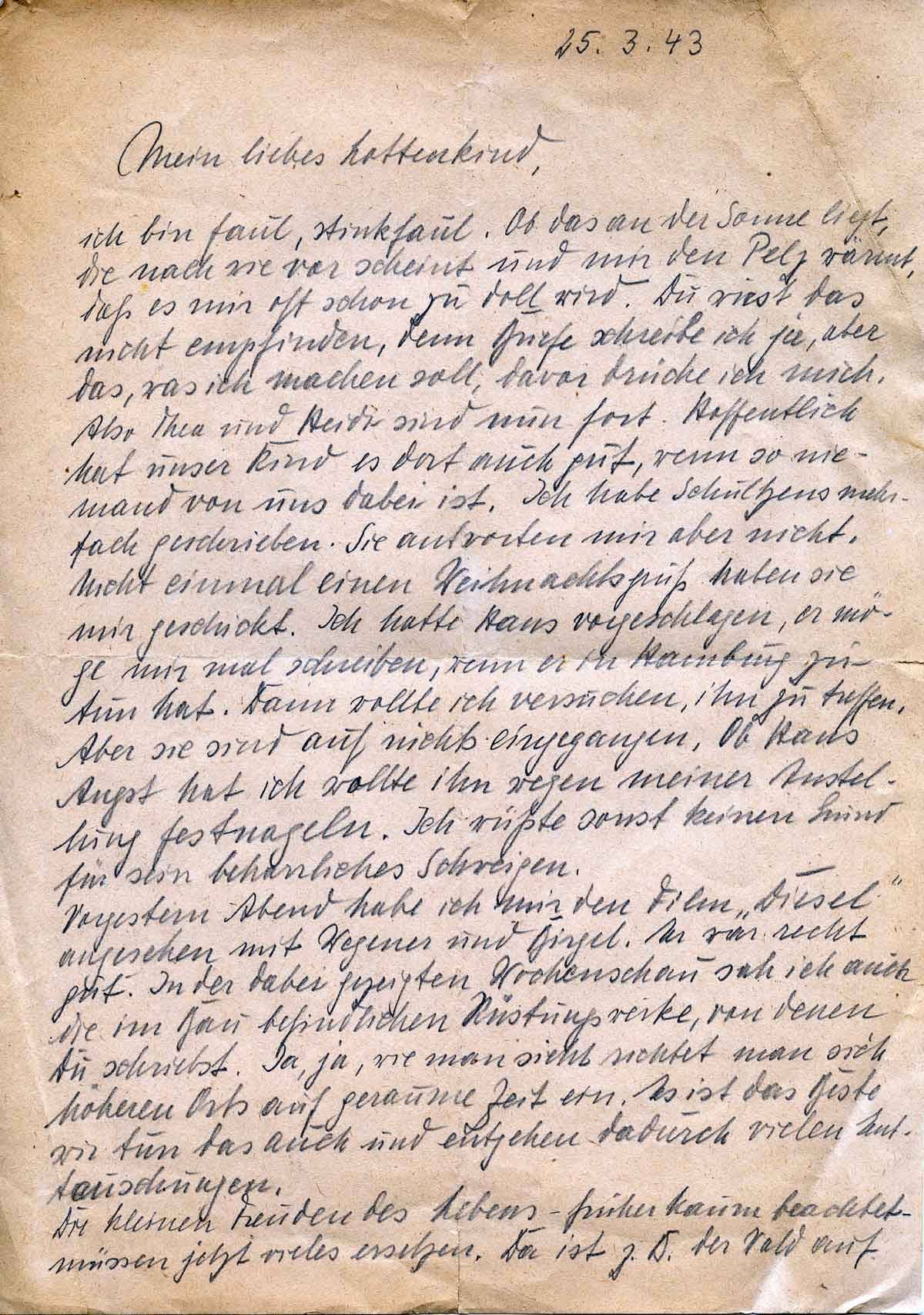 Harald Endemann an seine Frau Charlotte, 25. März 1943