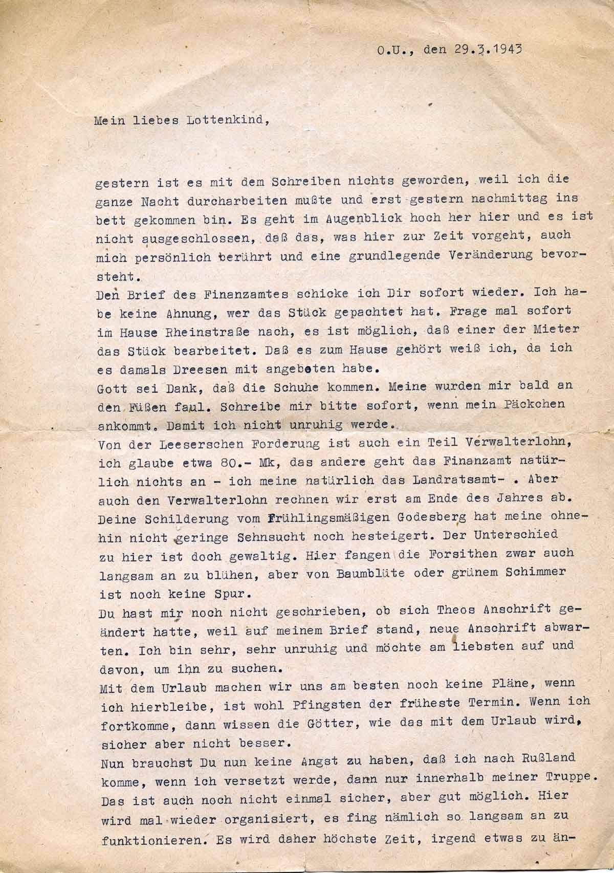 Harald Endemann an seine Frau Charlotte, 29. März 1943