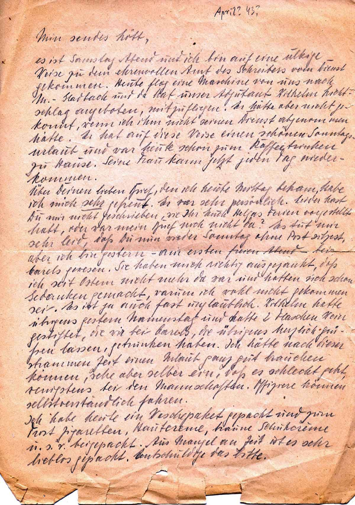 Harald Endemann an seine Frau Charlotte, April oder Mai 1943 (?)