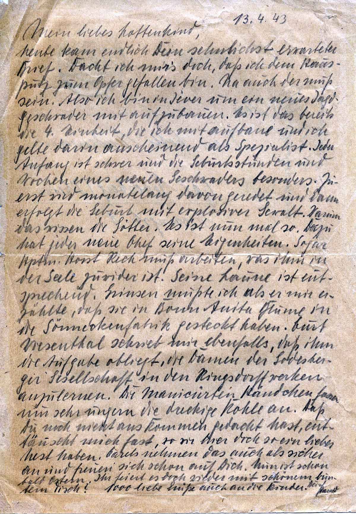 Harald Endemann an seine Frau Charlotte, 13. April 1943