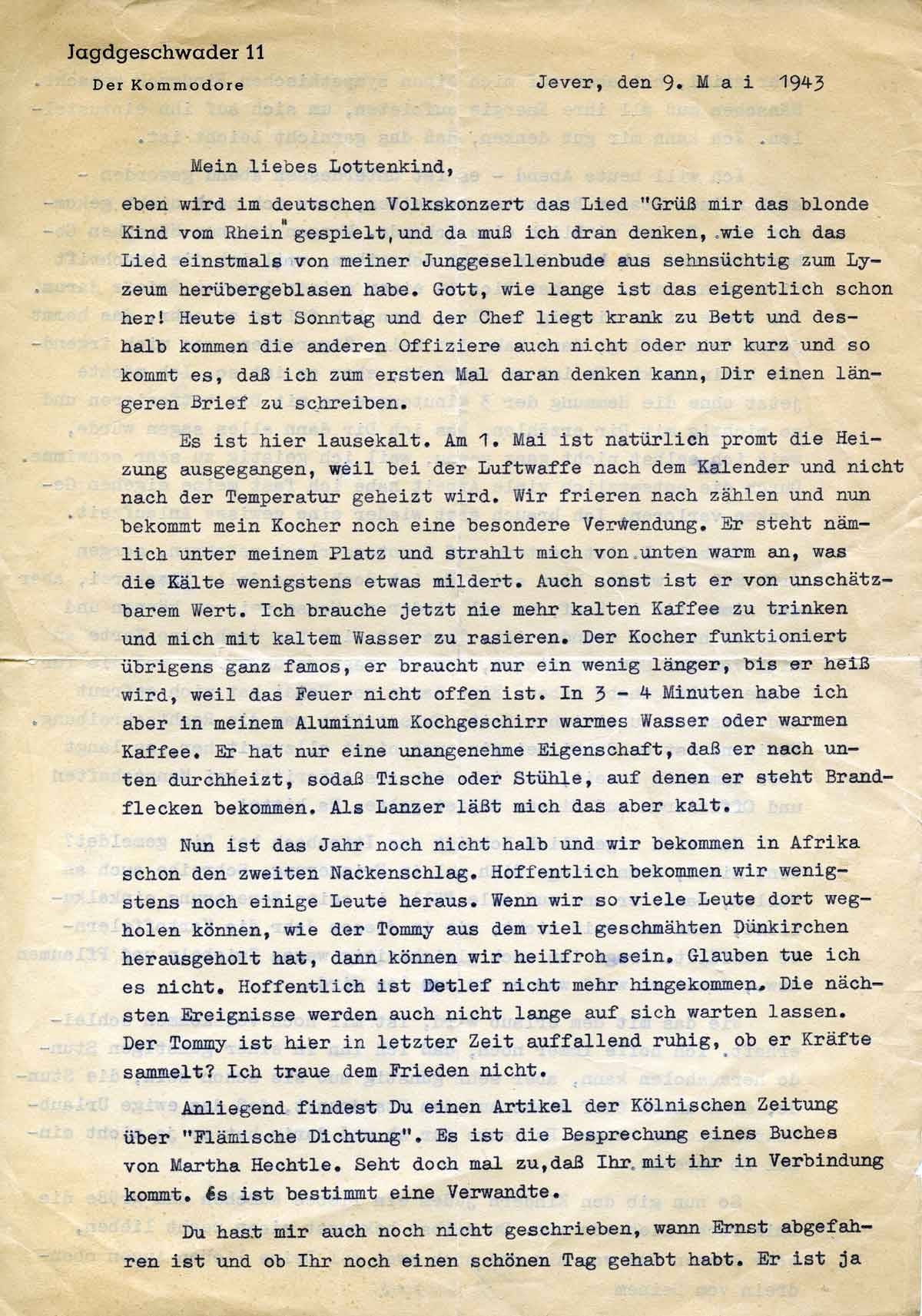 Harald Endemann an seine Frau Charlotte, 9. Mai 1943