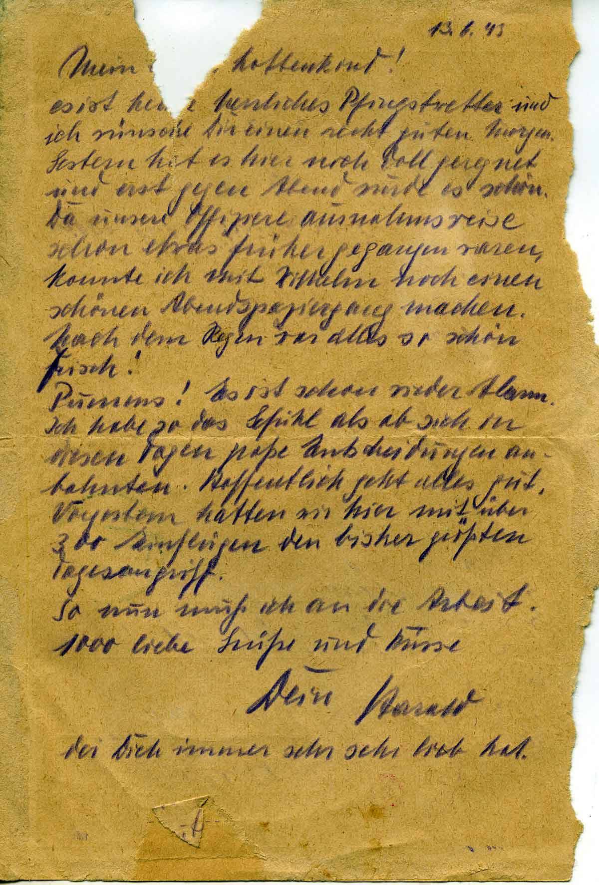 Harald Endemann an seine Frau Charlotte, 13. Juni 1943