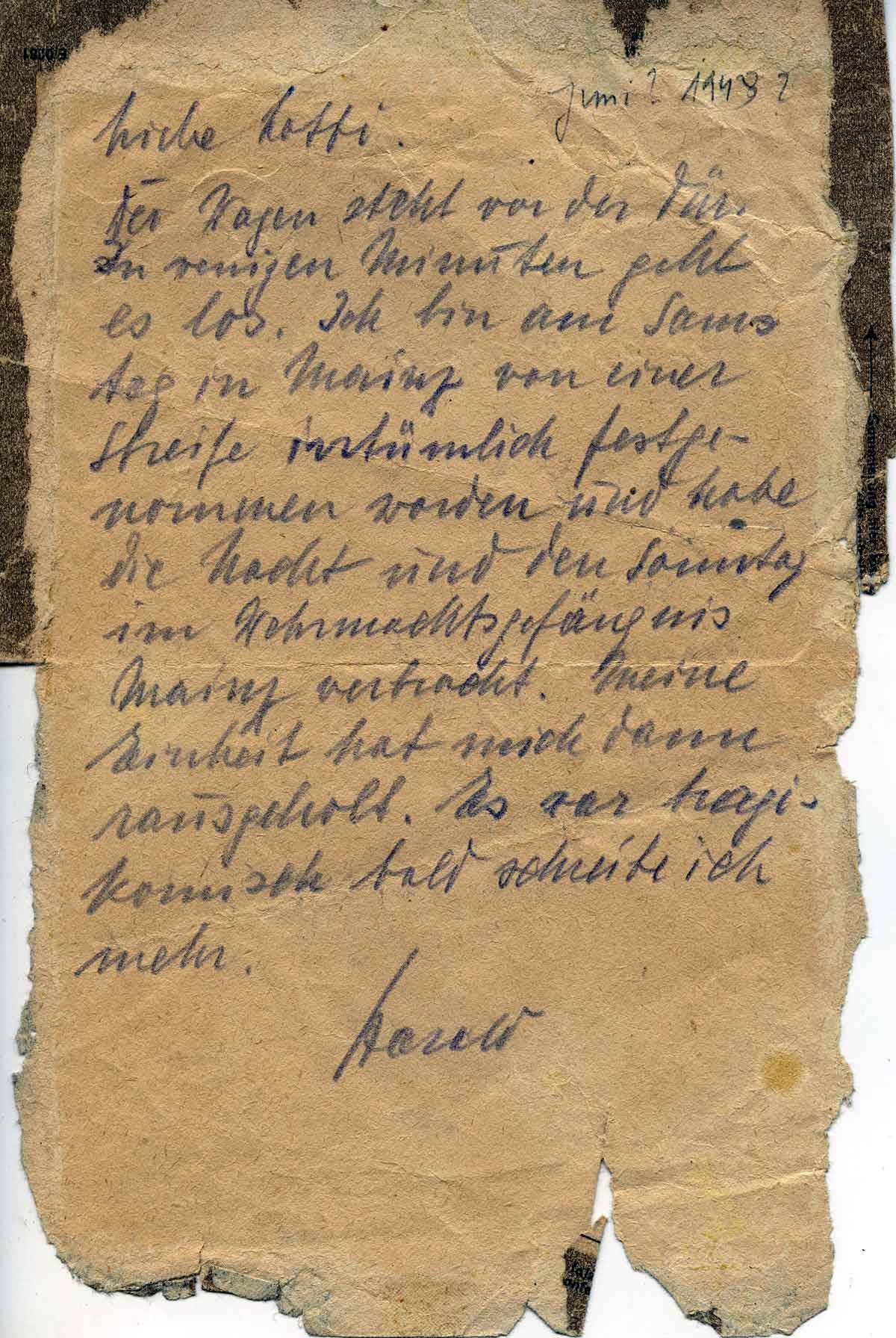 Der Wagen steht vor der Tür. In wenigen Minuten geht es los. Ich bin am Samstag in Mainz von einer Streife irrtümlich festgenommen worden und habe die Nacht und den Sonntag im Wehrmachtsgefängnis Mainz verbracht. Meine Einheit hat mich dann rausgeholt. Es war tragikomisch bald schreibe ich mehr.