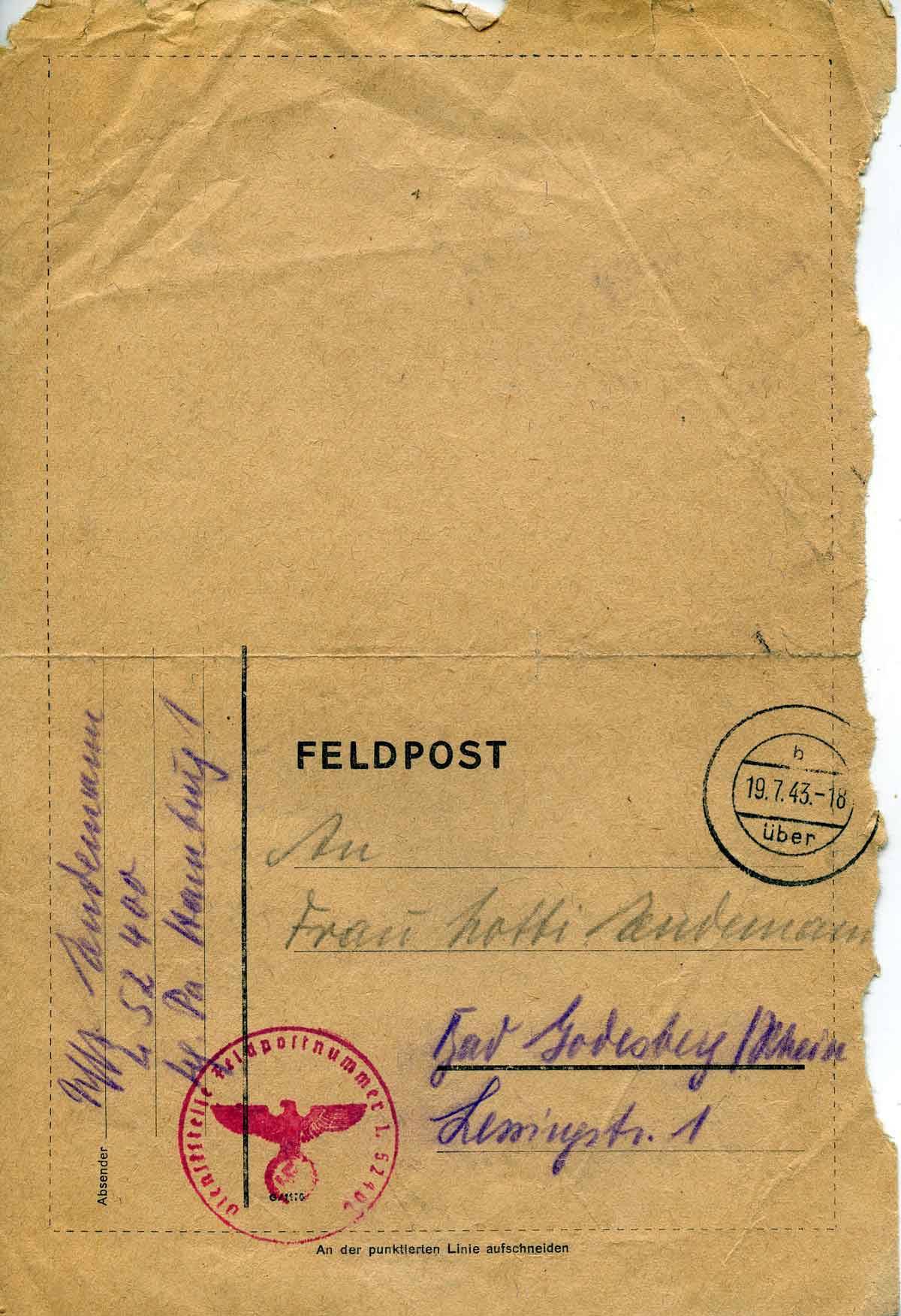 Harald Endemann an seine Frau Charlotte, 18. Juli 1943