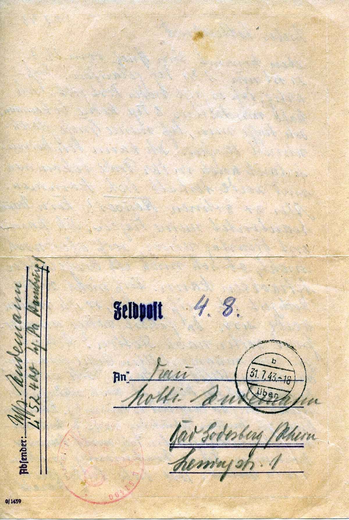 Harald Endemann an seine Frau Charlotte, 31. Juli 1943