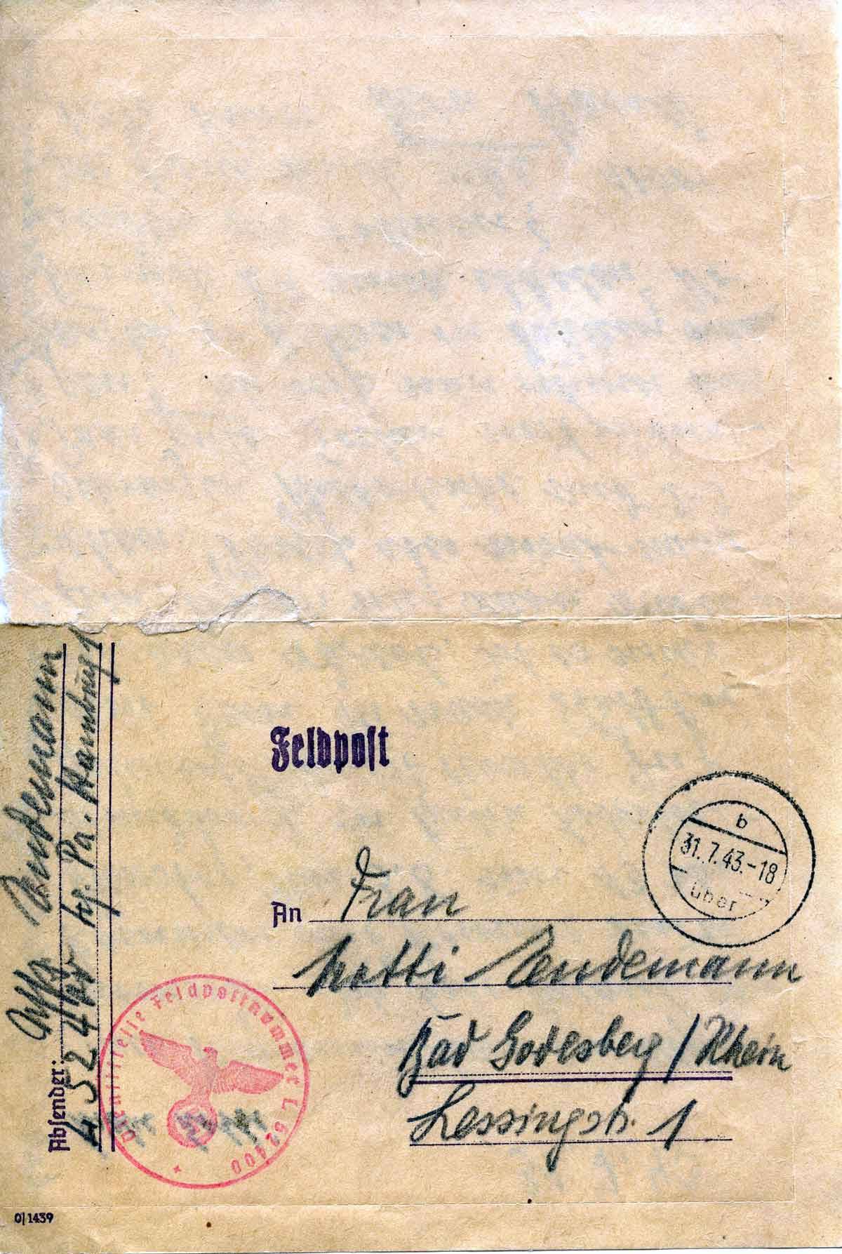 Harald Endemann an seine Frau Charlotte, 31. Juli 1943