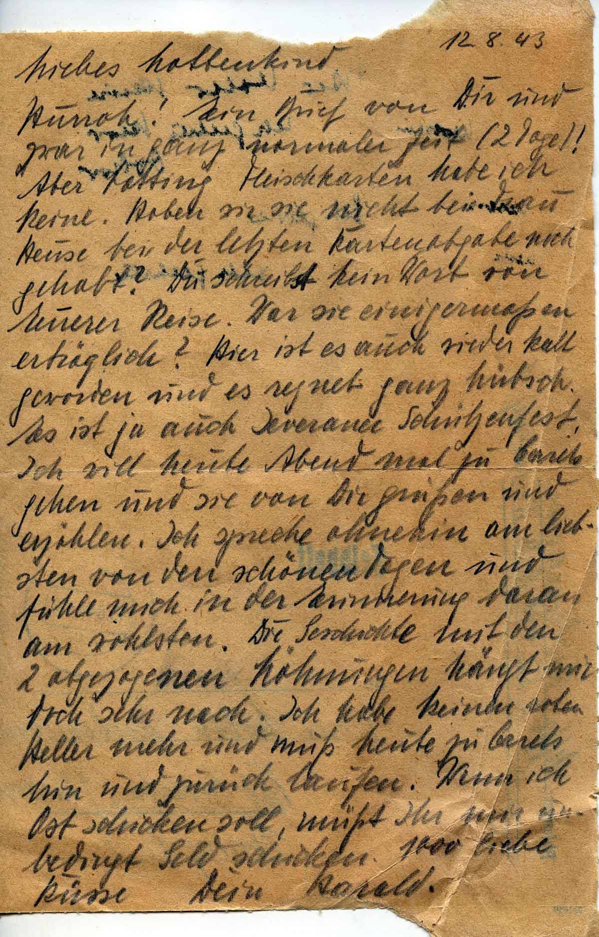 Harald Endemann an seine Frau Charlotte, 12. August 1943