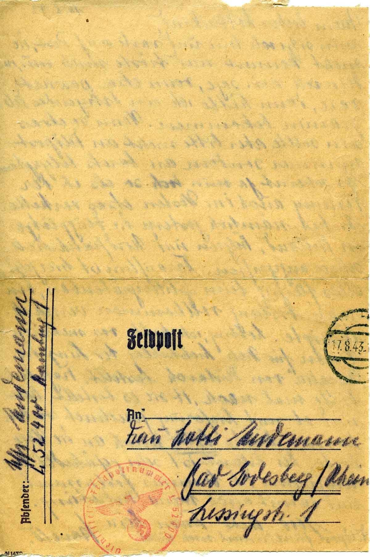 Harald Endemann an seine Frau Charlotte, 16. August 1943