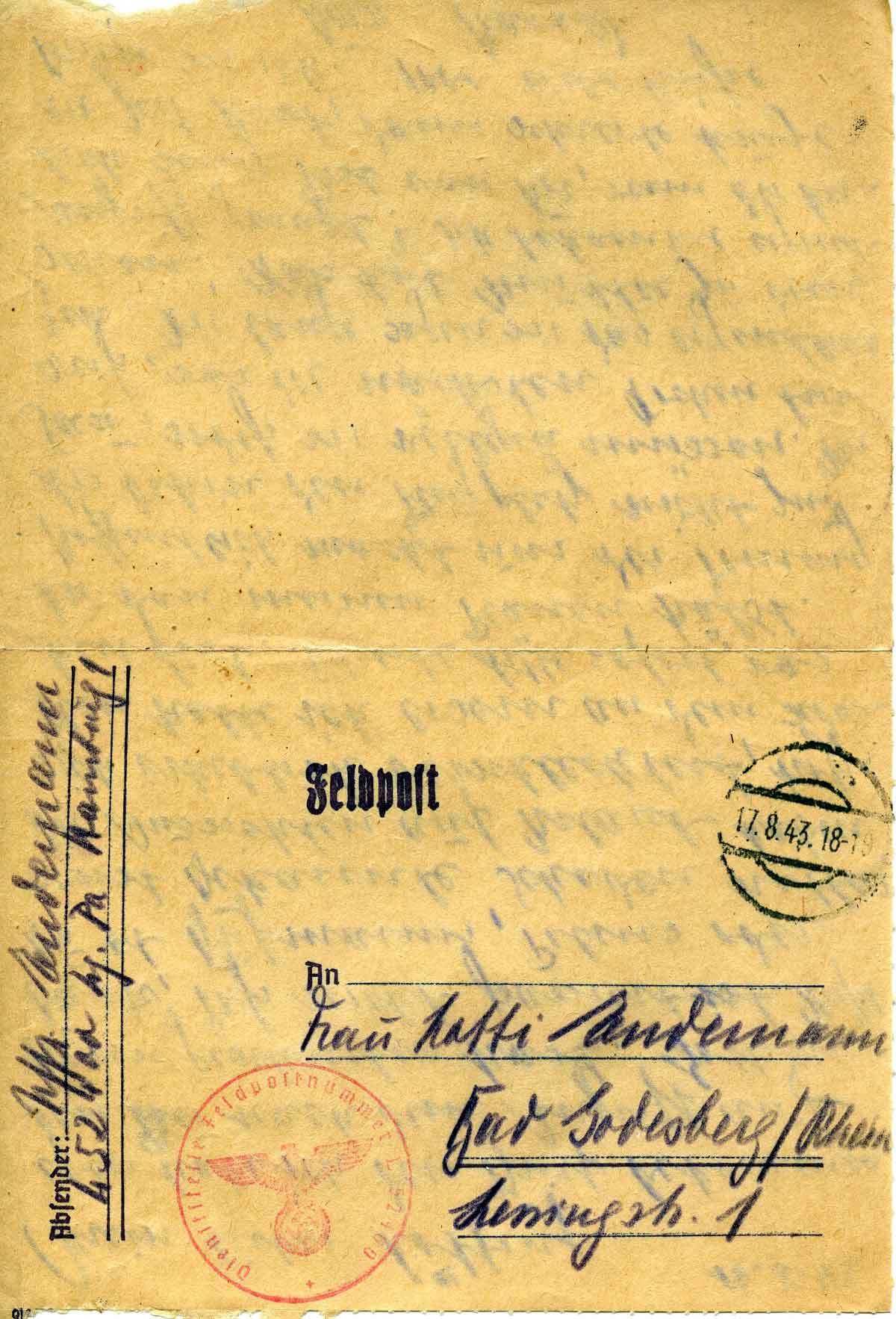 Harald Endemann an seine Frau Charlotte, 16. August 1943