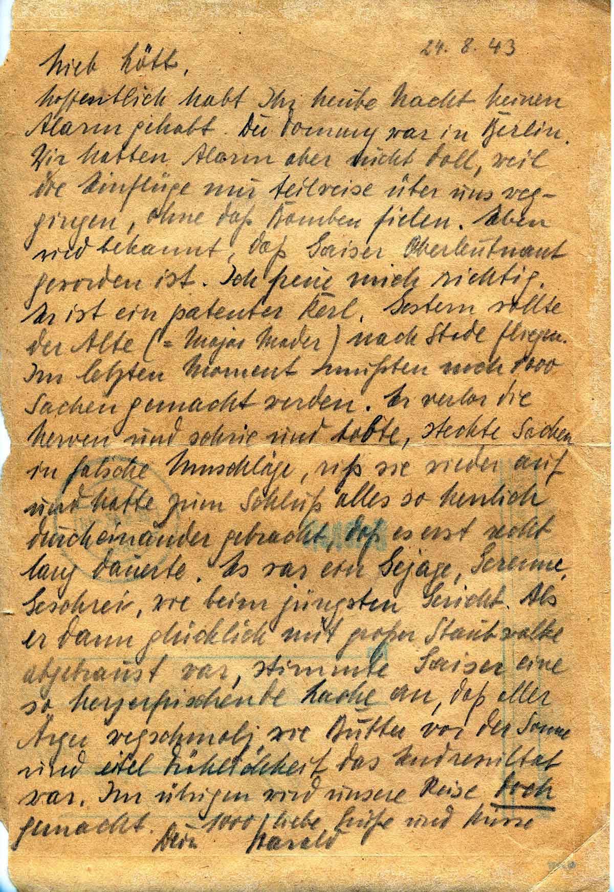 Harald Endemann an seine Frau Charlotte, 24. August 1943