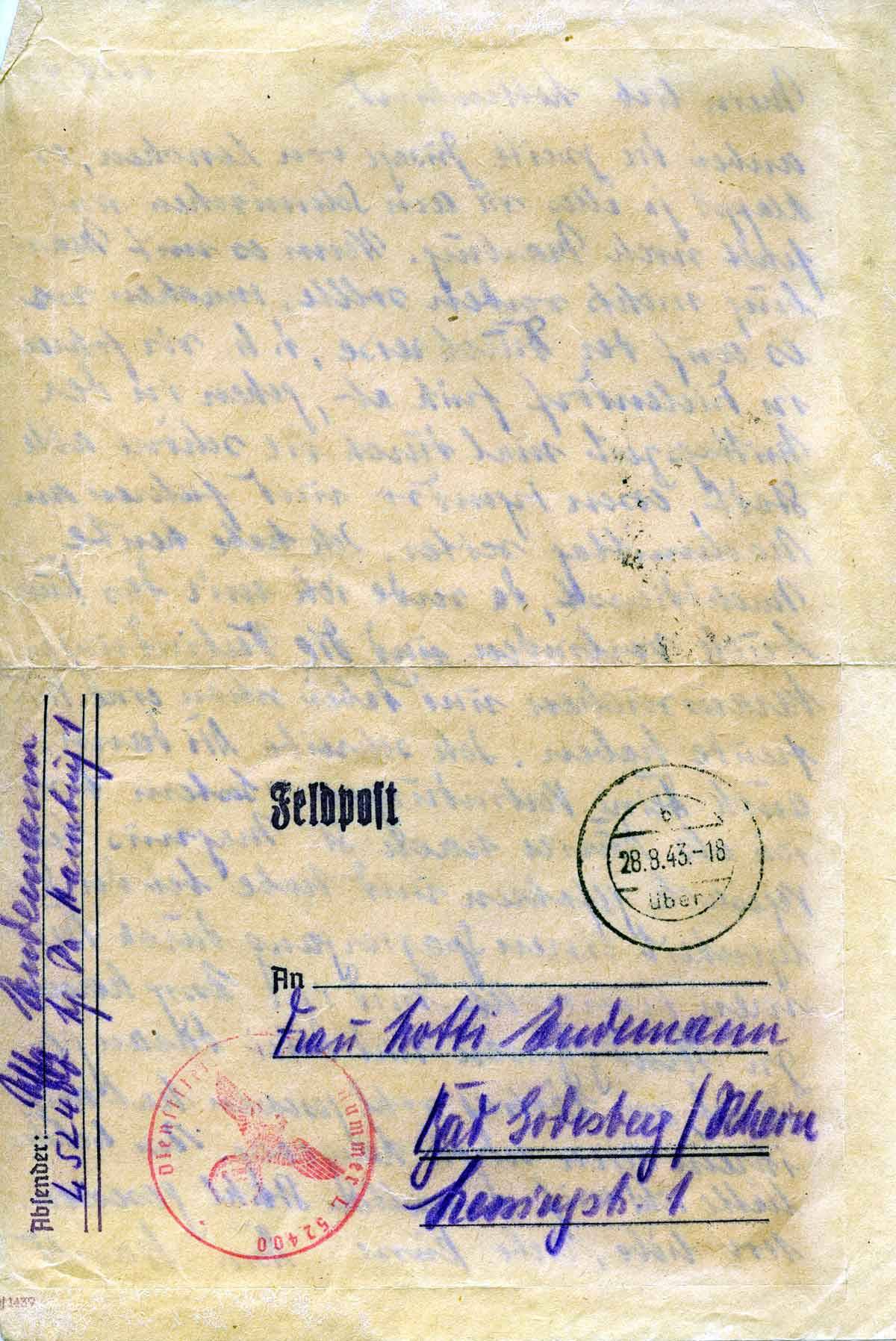 Harald Endemann an seine Frau Charlotte, 28. August 1943