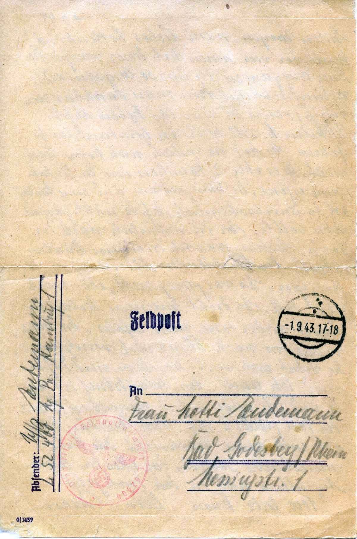 Harald Endemann an seine Frau Charlotte, 1. September 1943