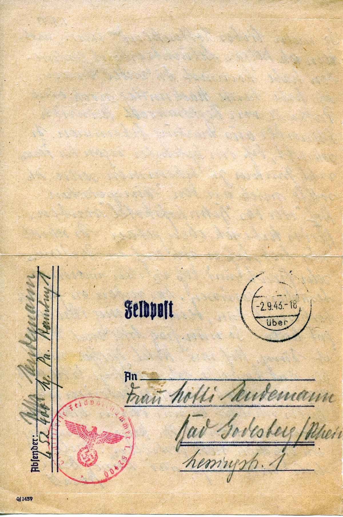 Harald Endemann an seine Frau Charlotte, 1. September 1943