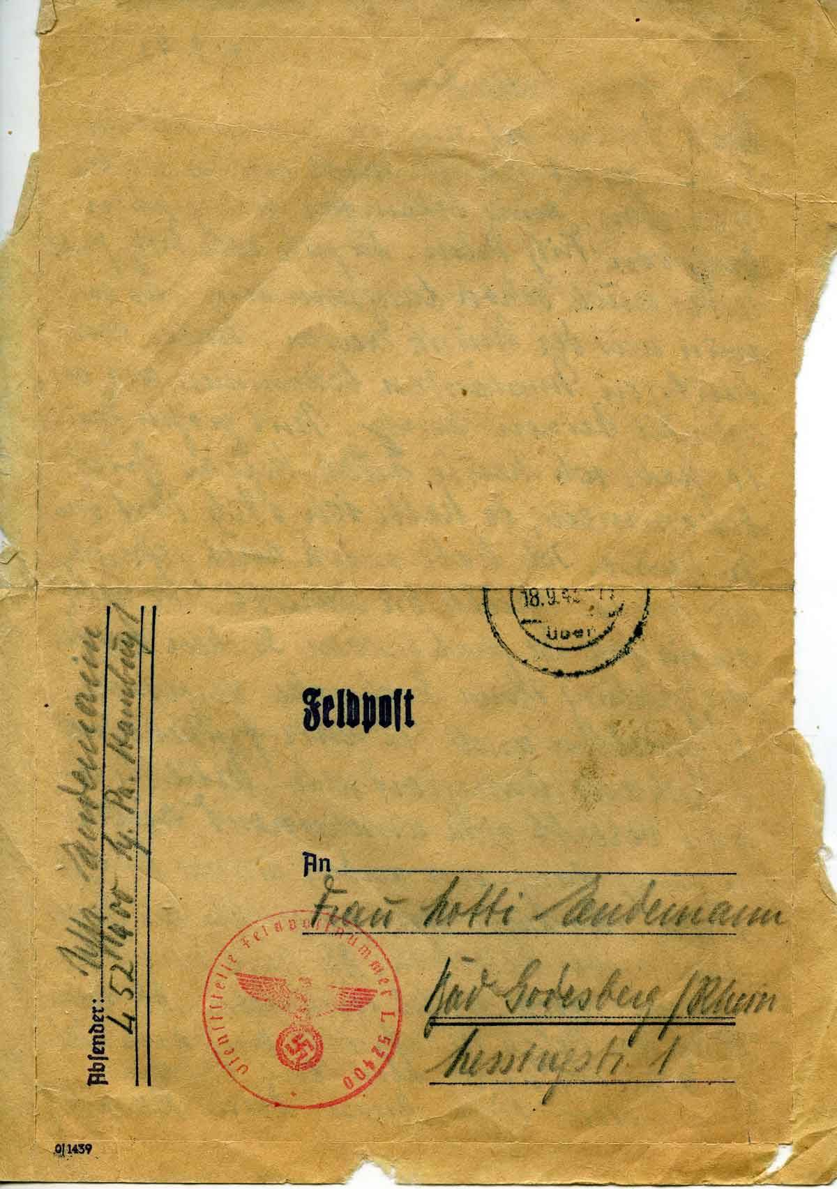 Harald Endemann an seine Frau Charlotte, 7. September 1943