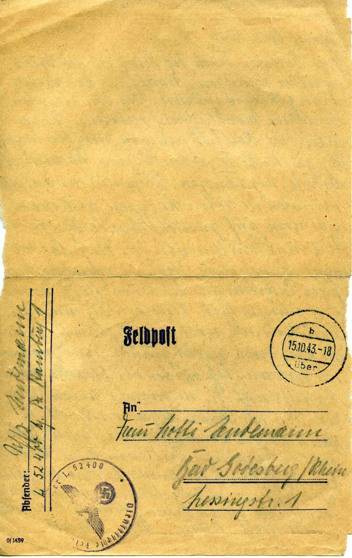 Harald Endemann an seine Frau Charlotte, 14. Oktober 1943