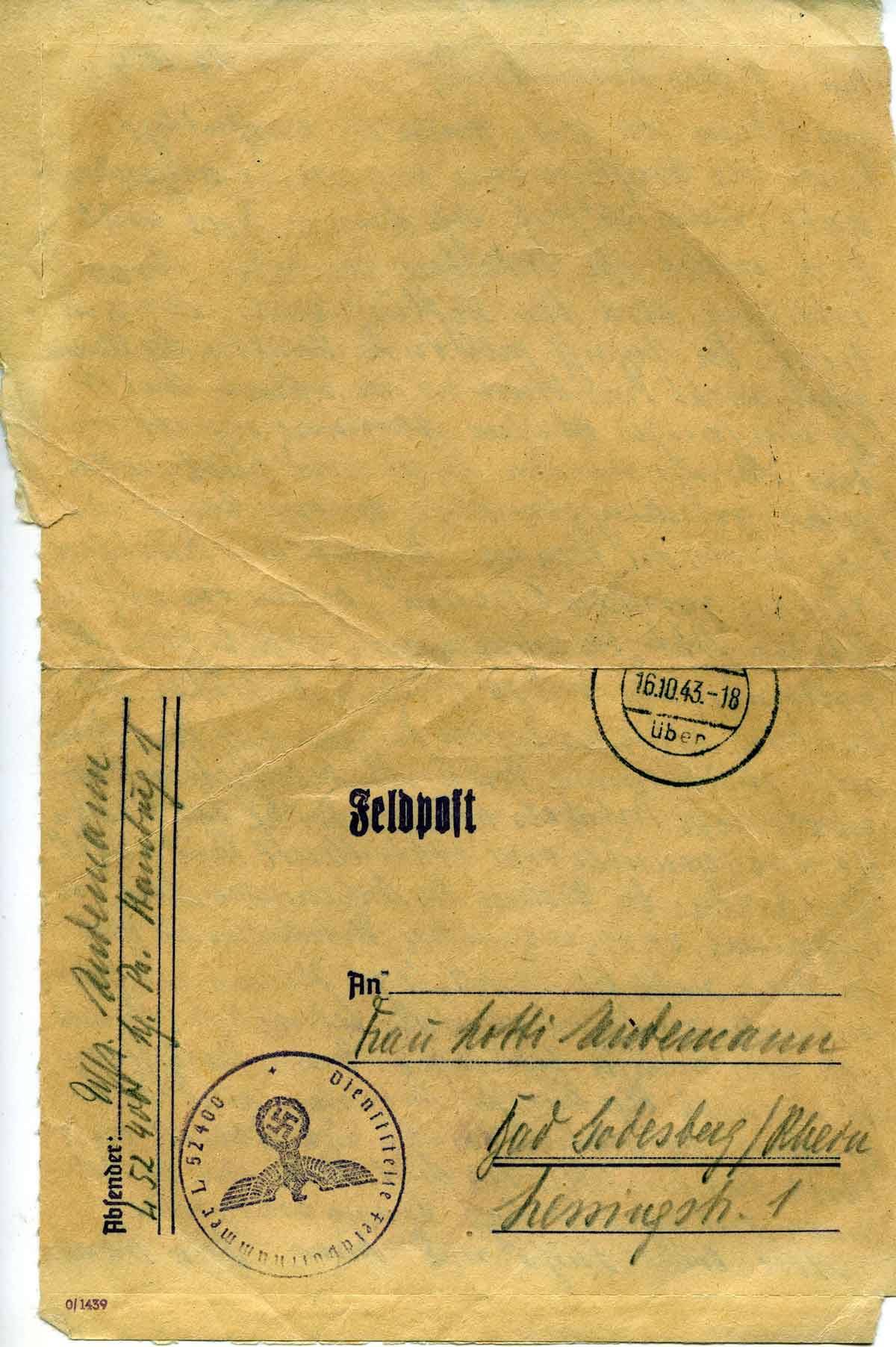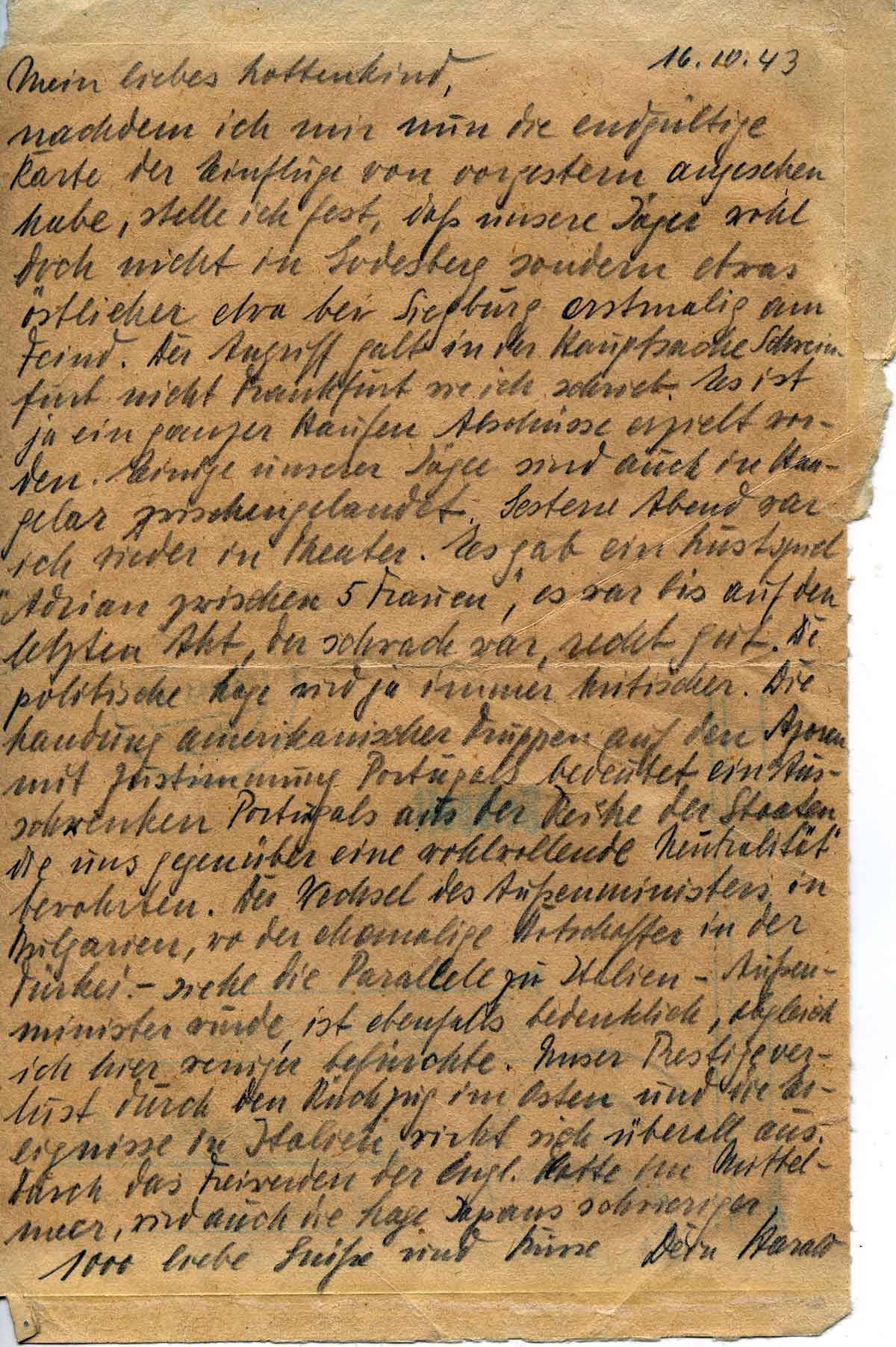 Harald Endemann an seine Frau Charlotte, 16. Oktober 1943