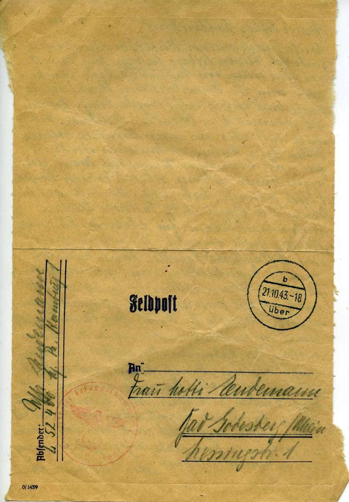 Harald Endemann an seine Frau Charlotte, 21. Oktober 1943