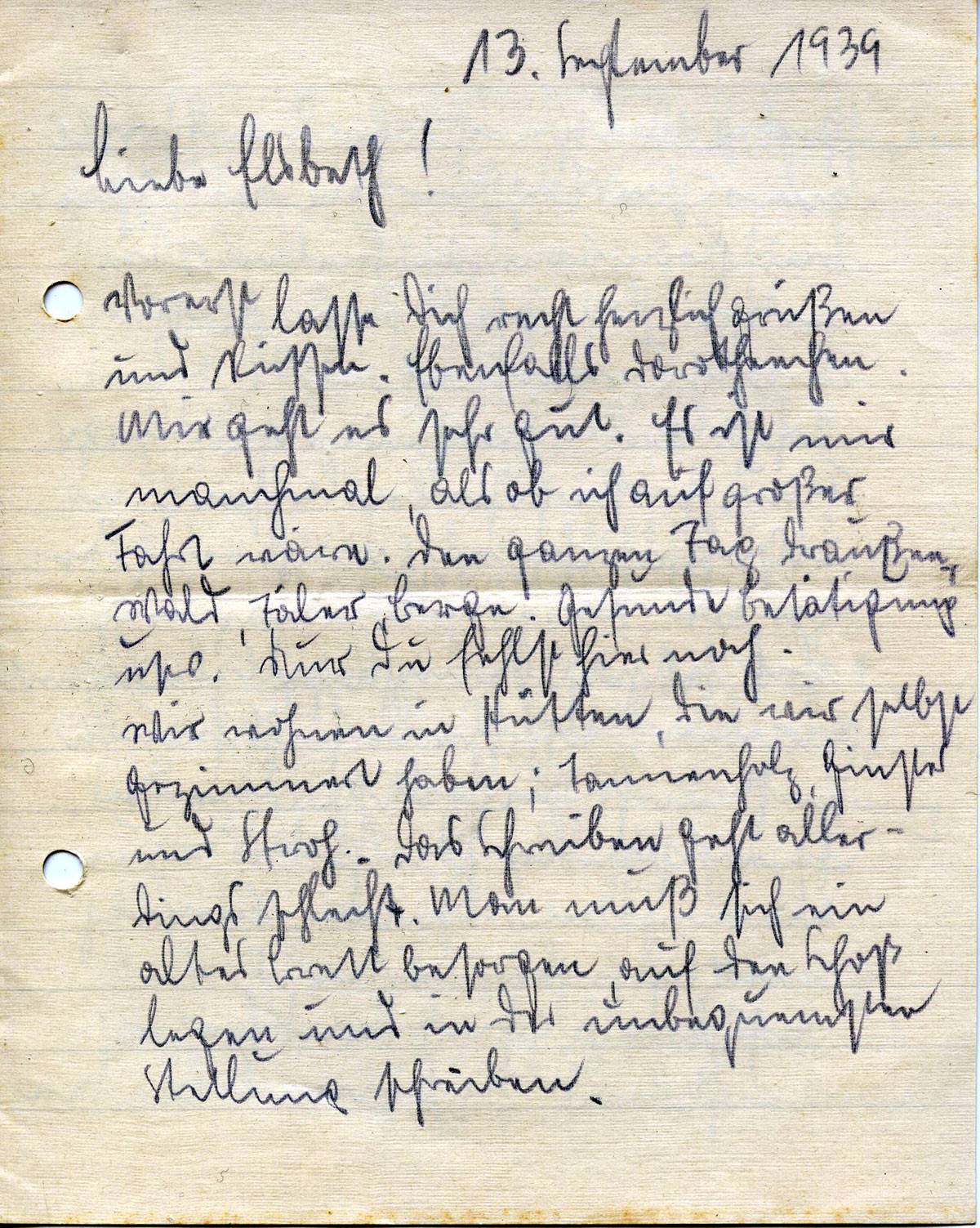 Hannes Ließem an seine Frau Elsbeth, 13. September 1939