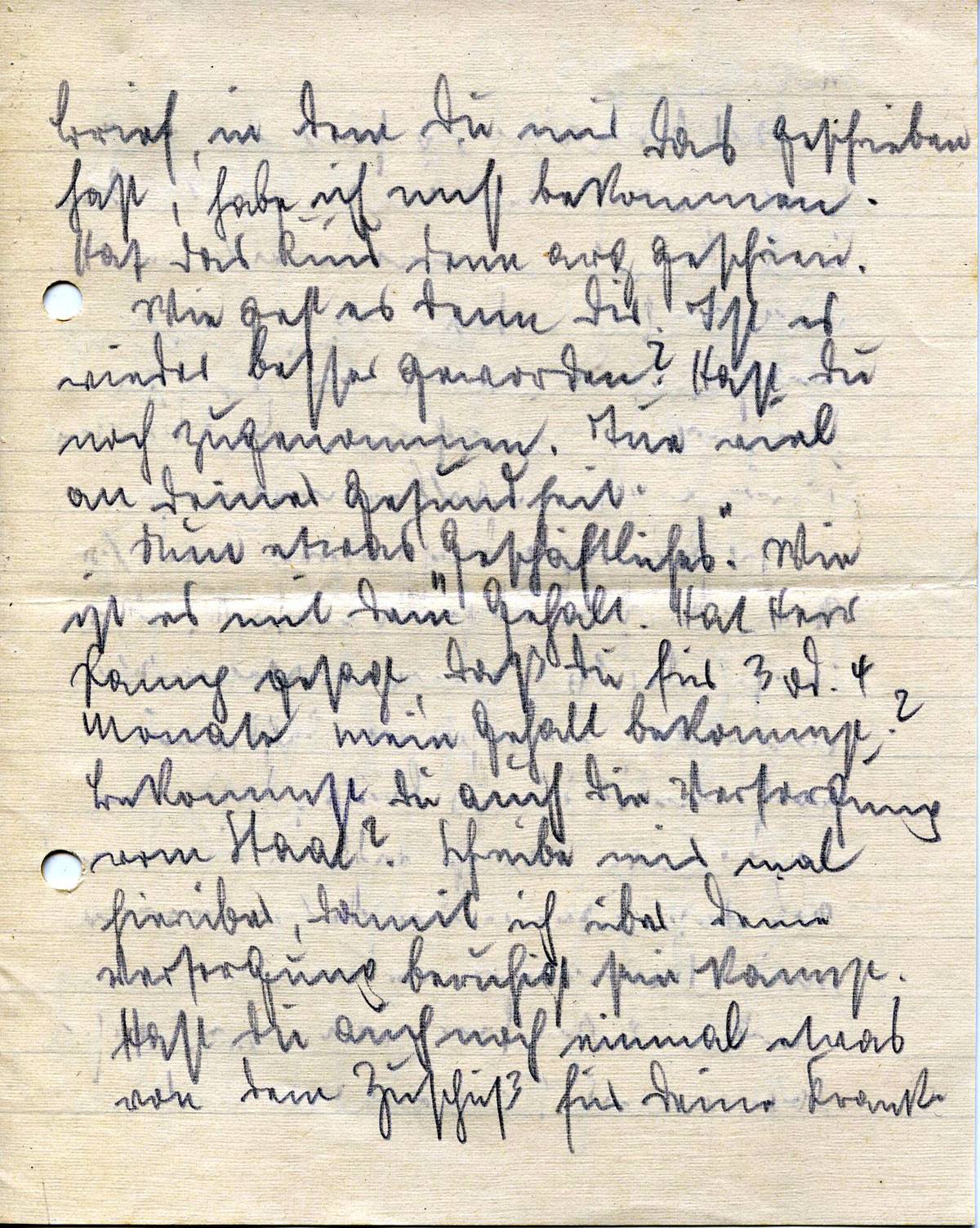 heit gehört? Daß Matthes so schön für Dich sorgt, macht mir Spaß. Grüße ihn und Deine und meine Eltern recht herzlich. Sage ihnen, daß ich mich auf die geringste Post beschränken müßte. Die Karten werden ja angekommen sein.