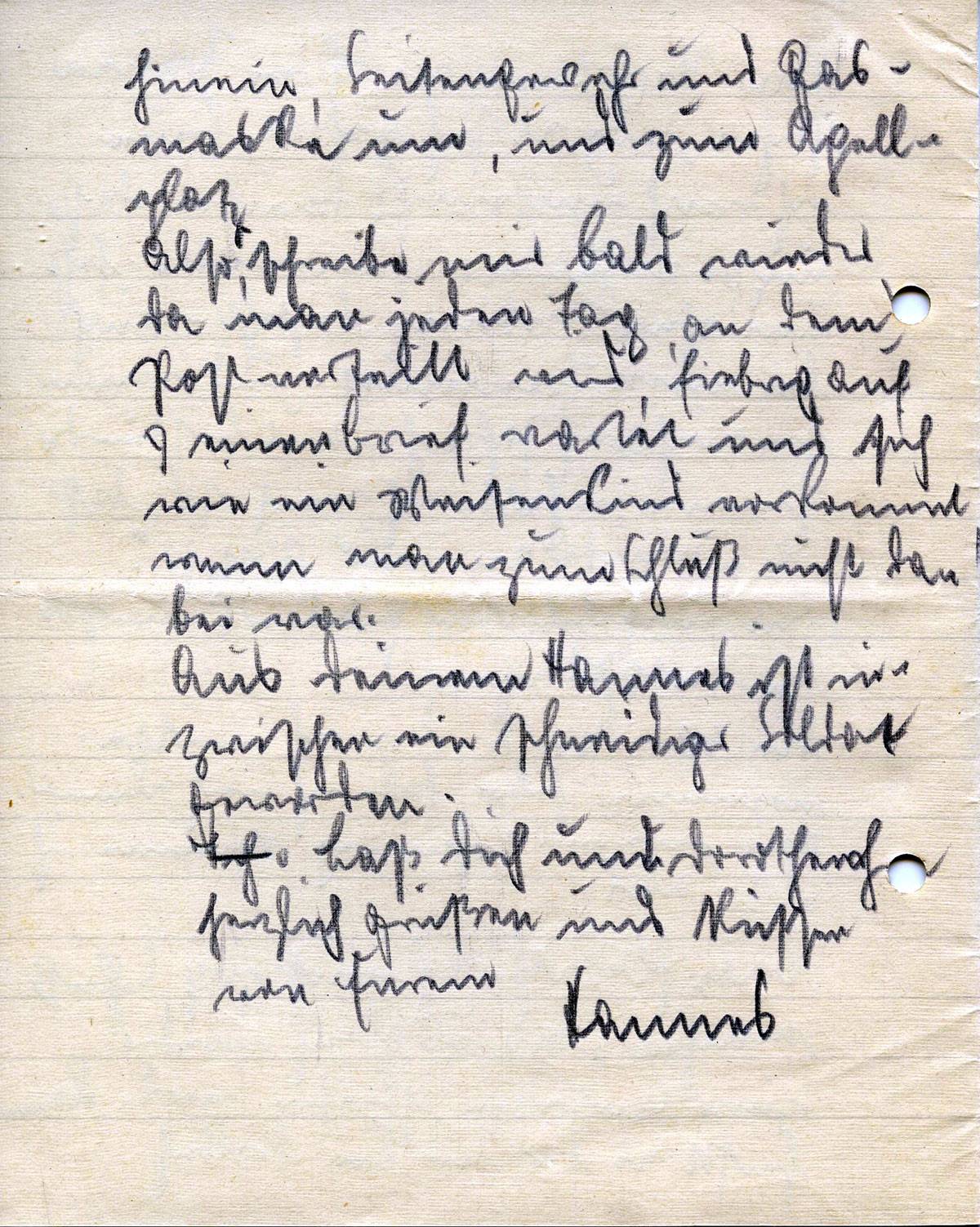 Liebe Elsbeth. Ich muß jetzt Schluß machen, da es gleich wieder zum Antreten pfeifen wird. Dann heißt es fix in den Drillich