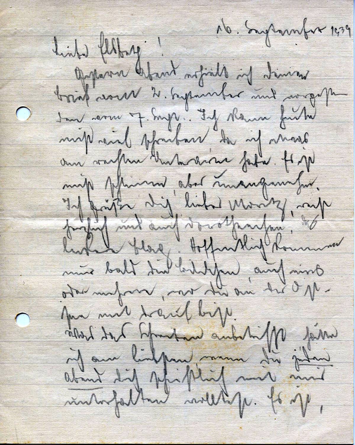 Hannes Ließem an seine Frau Elsbeth, 16. September 1939