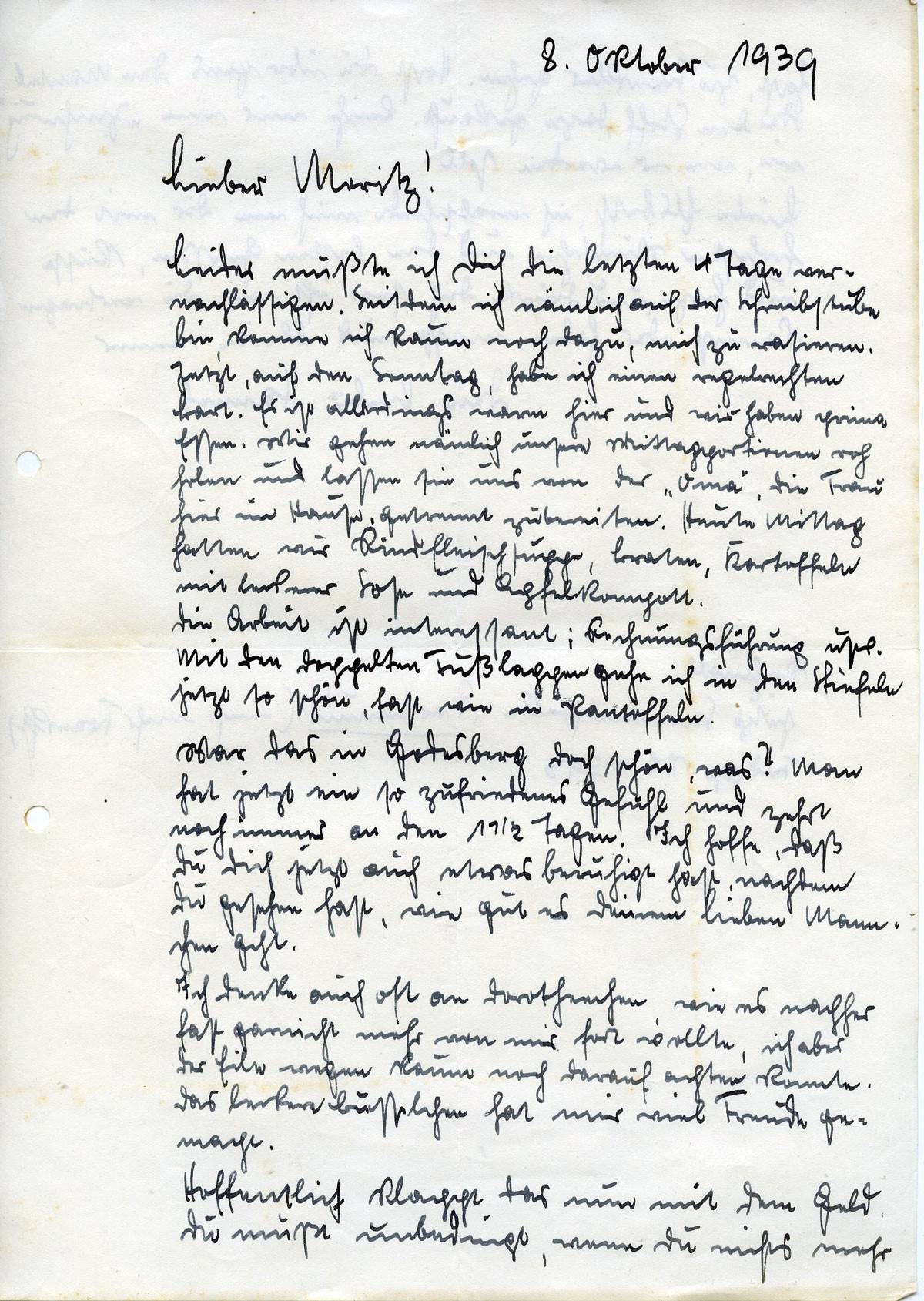 Johannes Ließem an seine Frau Elsbeth, 8. Oktober 1939