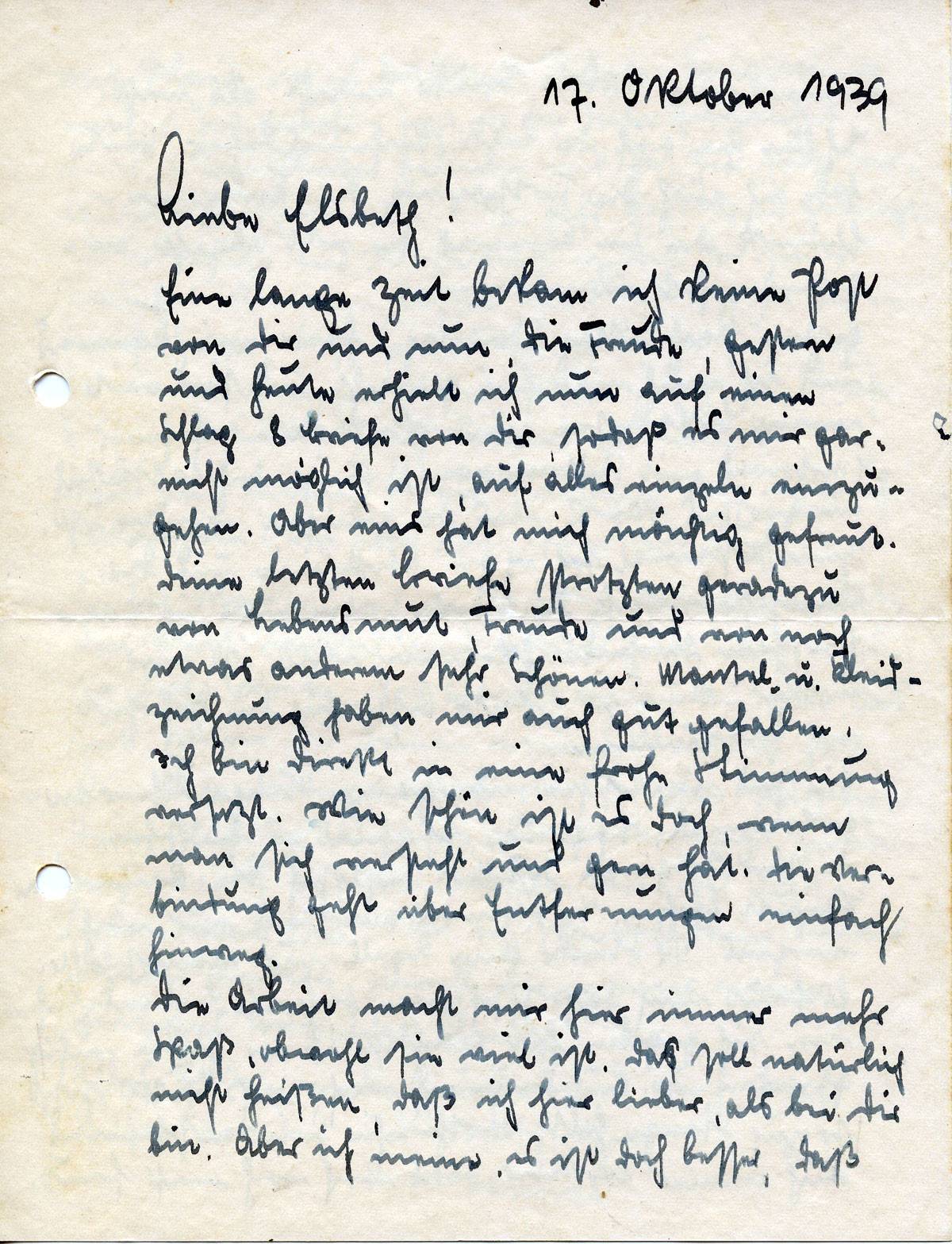 Johannes Ließem an seine Frau Elsbeth, 17. Oktober 1939