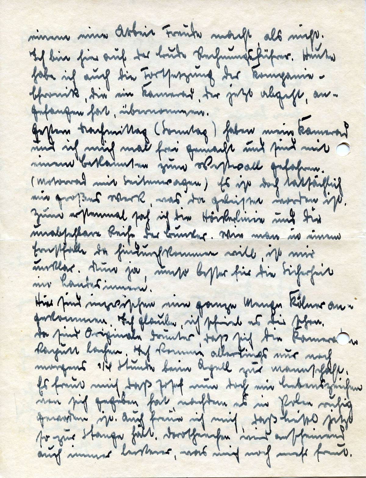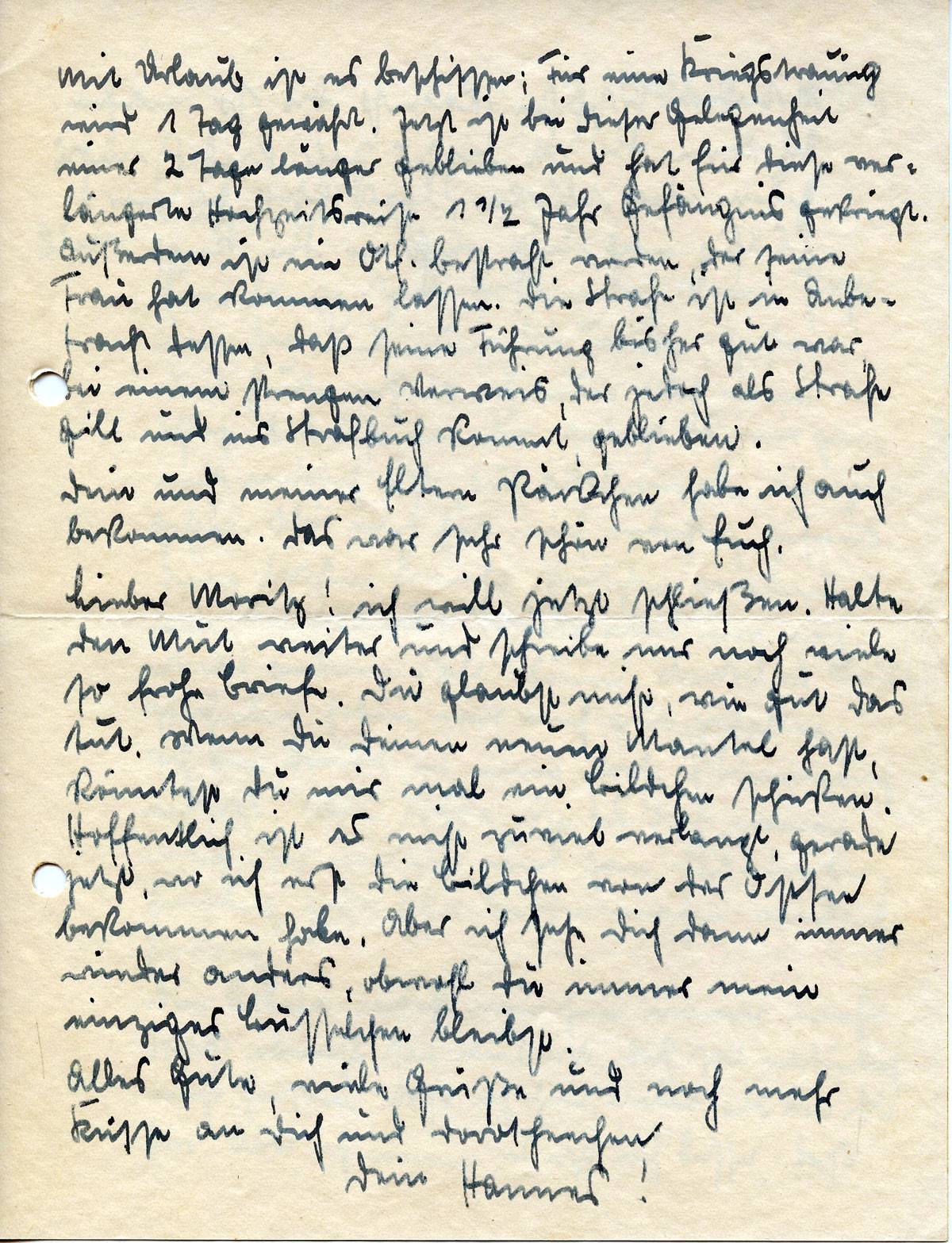Dein und meiner Eltern Päckchen habe ich auch bekommen. Das war sehr schön von Euch. Lieber Moritz! ich will jetzt schließen. Halte den Mut weiter und schreibe nur noch viele so frohe Briefe. Du glaubst nicht, wie gut das tut. Wenn Du Deinen neuen Mantel hast, könntest Du mir mal ein Bildchen schießen. Hoffentlich ist es nicht zuviel verlangt, gerade jetzt, wo ich erst die Bildchen von der Ostsee bekommen habe. Aber ich sehe Dich dann immer wieder anders, obwohl Du immer mein einziges Busselchen bleibst.