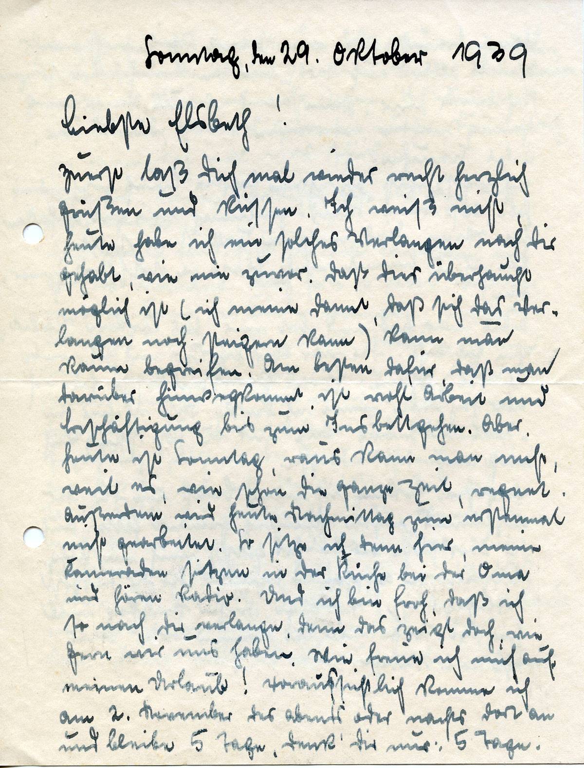 Johannes Ließem an seine Frau Elsbeth, 29. Oktober 1939