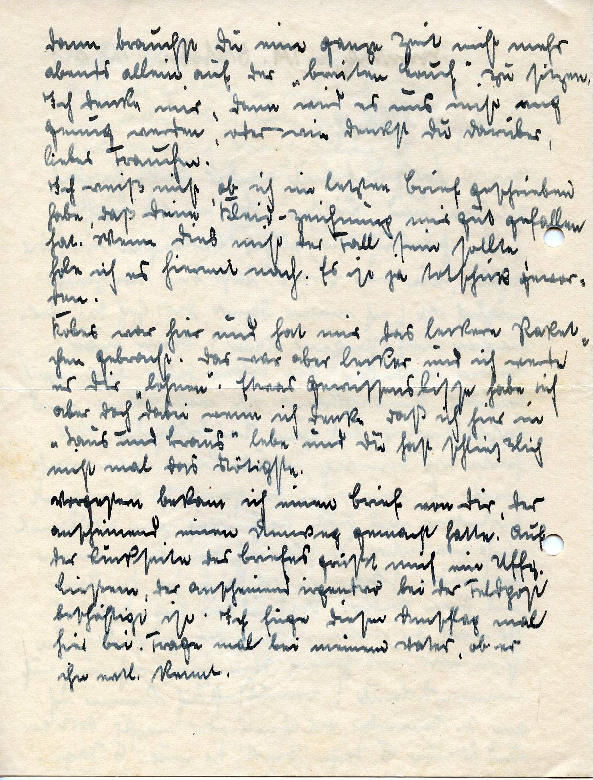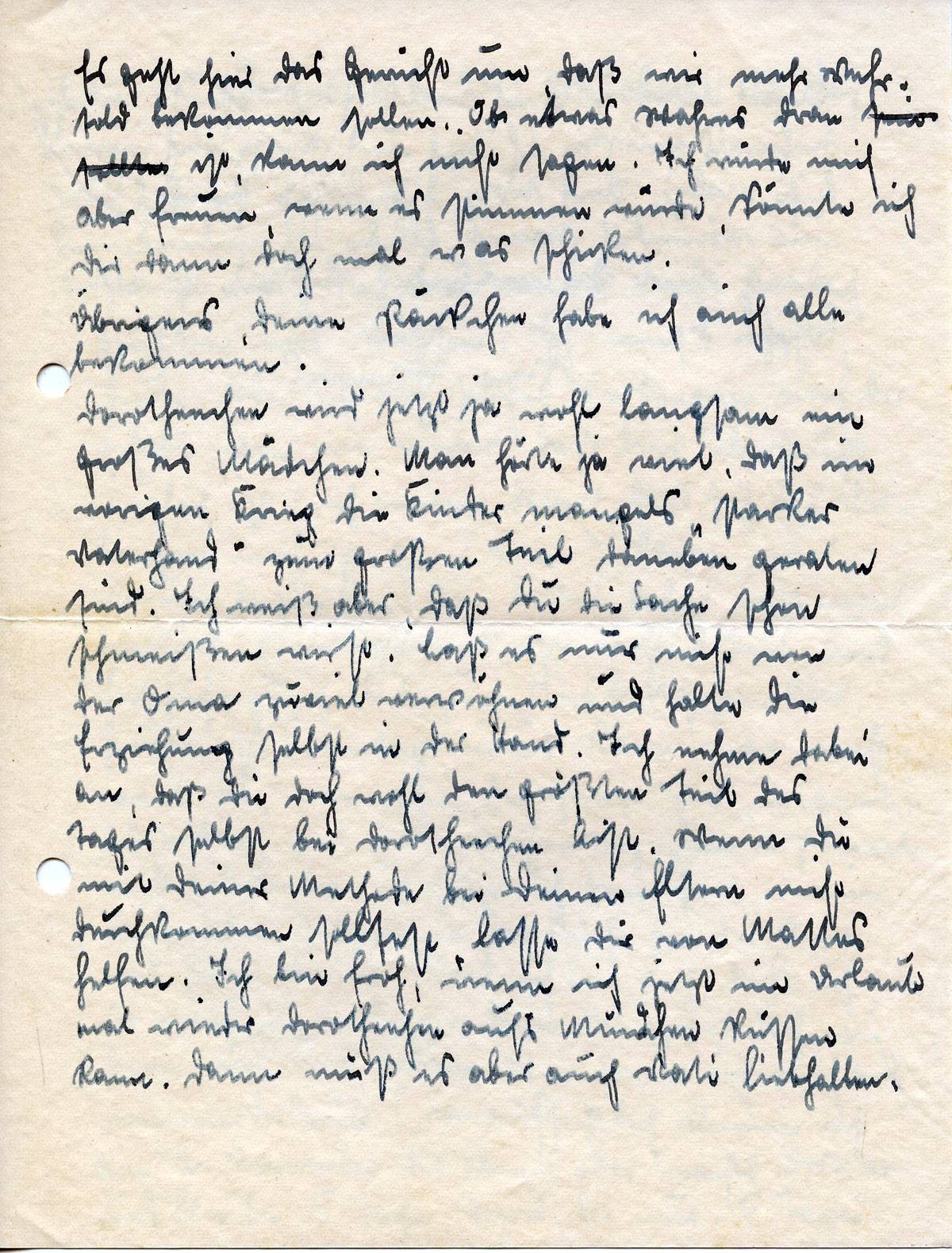 Zuerst laß dich mal wieder recht herzlich grüßen und küssen. Ich weiß nicht, heute habe ich ein solches Verlangen nach Dir gehabt, wie nie zuvor. Daß dies überhaupt möglich ist (ich meine damit, daß sich das Verlangen noch steigern kann) kann man kaum begreifen. Am besten dafür, daß man darüber hinwegkommt ist wohl Arbeit und Beschäftigung bis zum Insbettgehen.