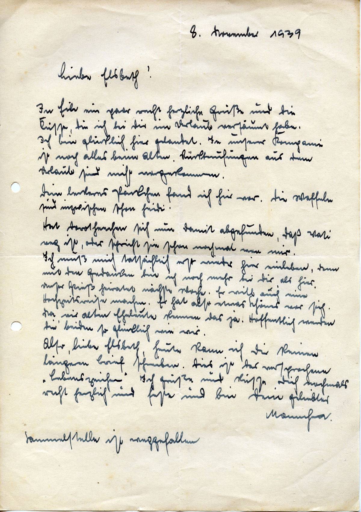 Johannes Ließem an seine Frau Elsbeth, 8. November 1939
