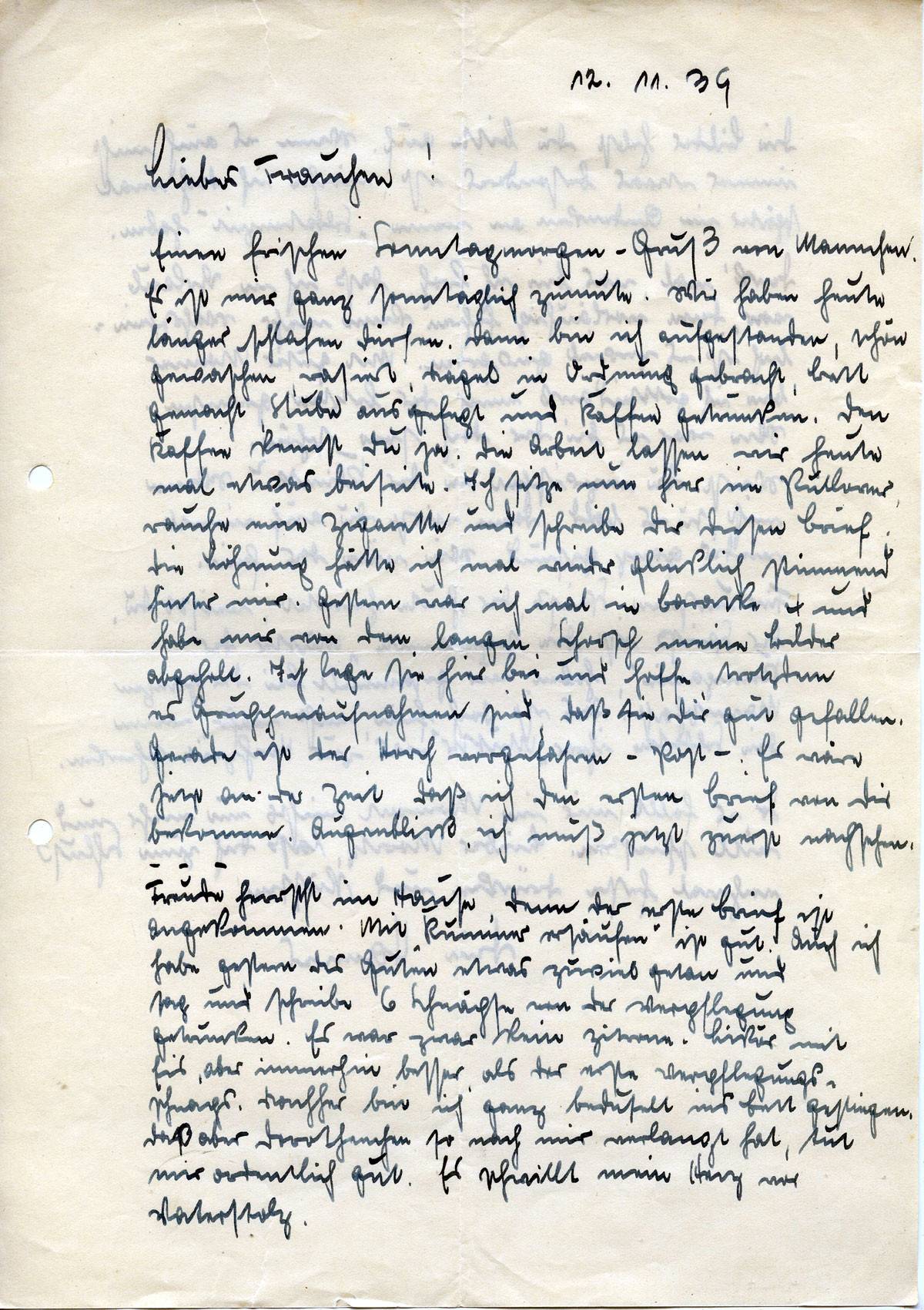 Johannes Ließem an seine Frau Elsbeth, 12. November 1939