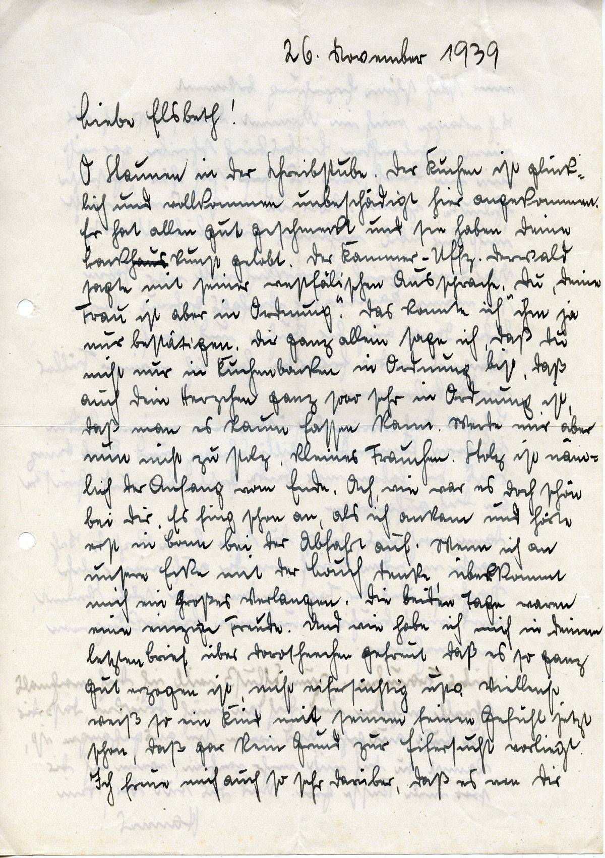 Johannes Ließem an seine Frau Elsbeth, 26. November 1939