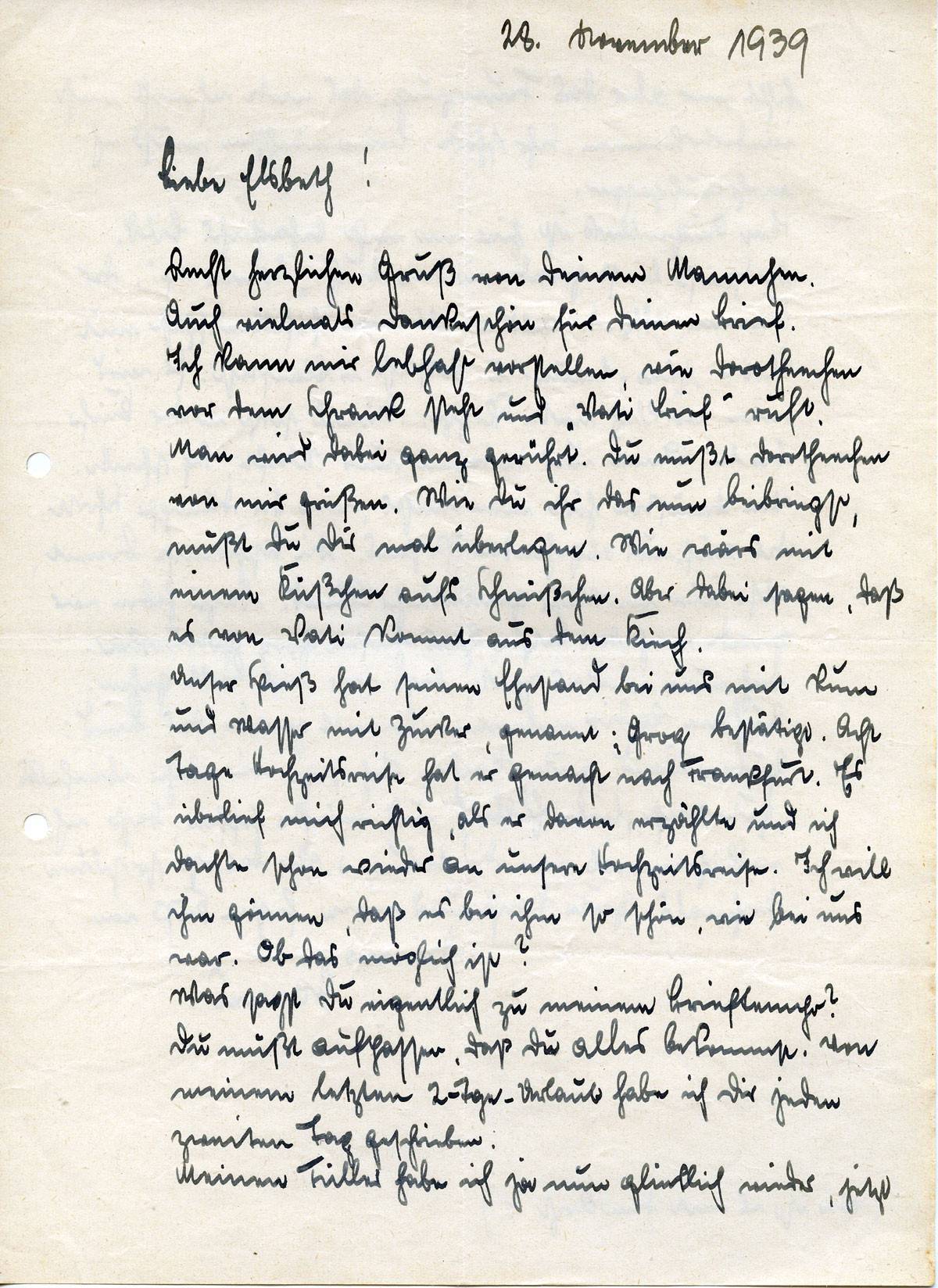 Johannes Ließem an seine Frau Elsbeth, 28. November 1939