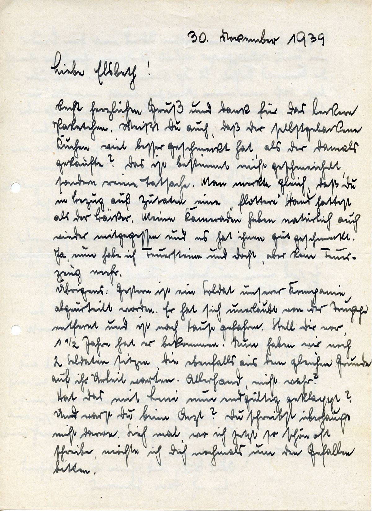 Johannes Ließem an seine Frau Elsbeth, 30. November 1939