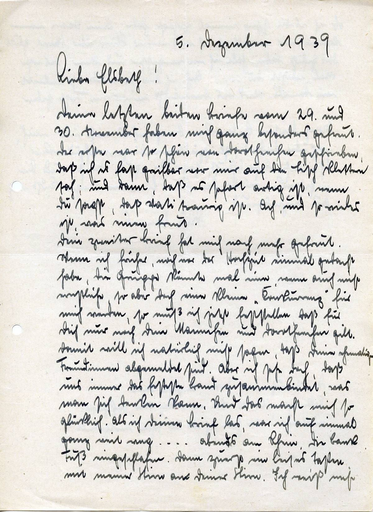 Johannes Ließem an seine Frau Elsbeth, 5. Dezember 1939