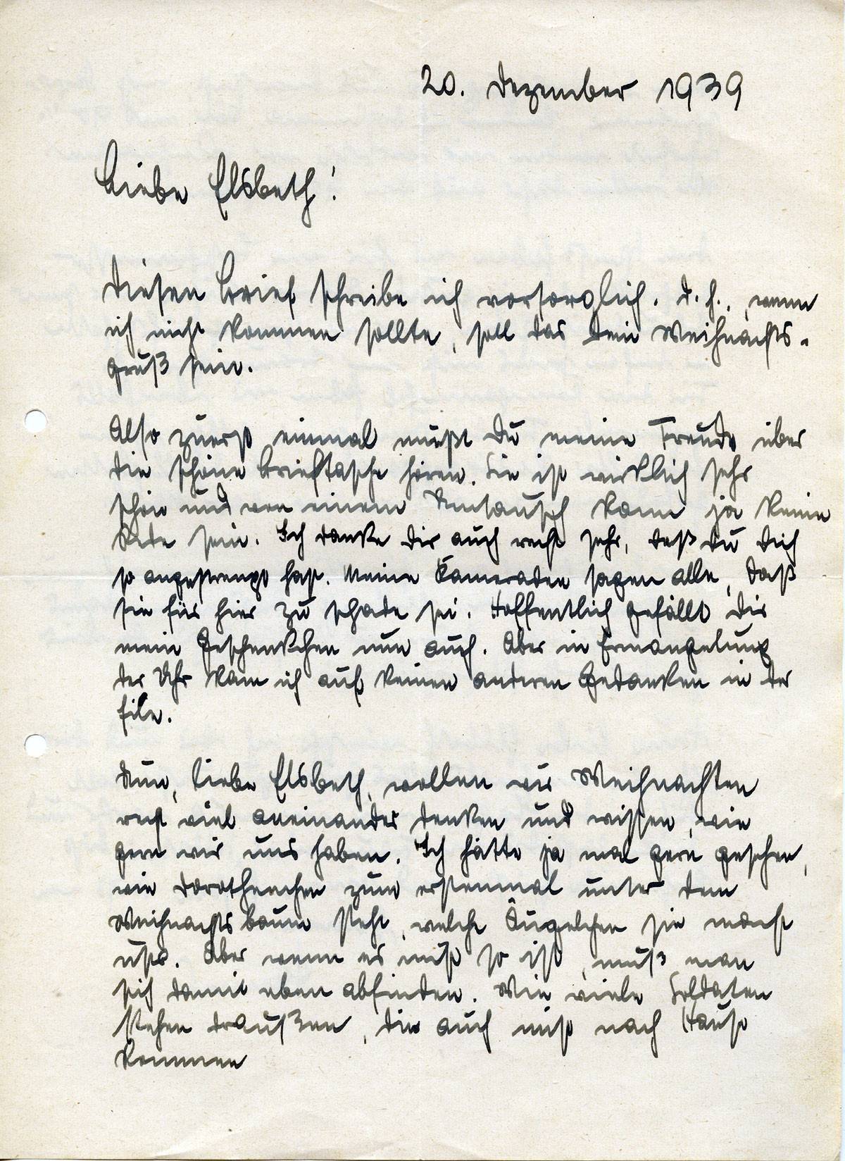 Johannes Ließem an seine Frau Elsbeth, 20. Dezember 1939