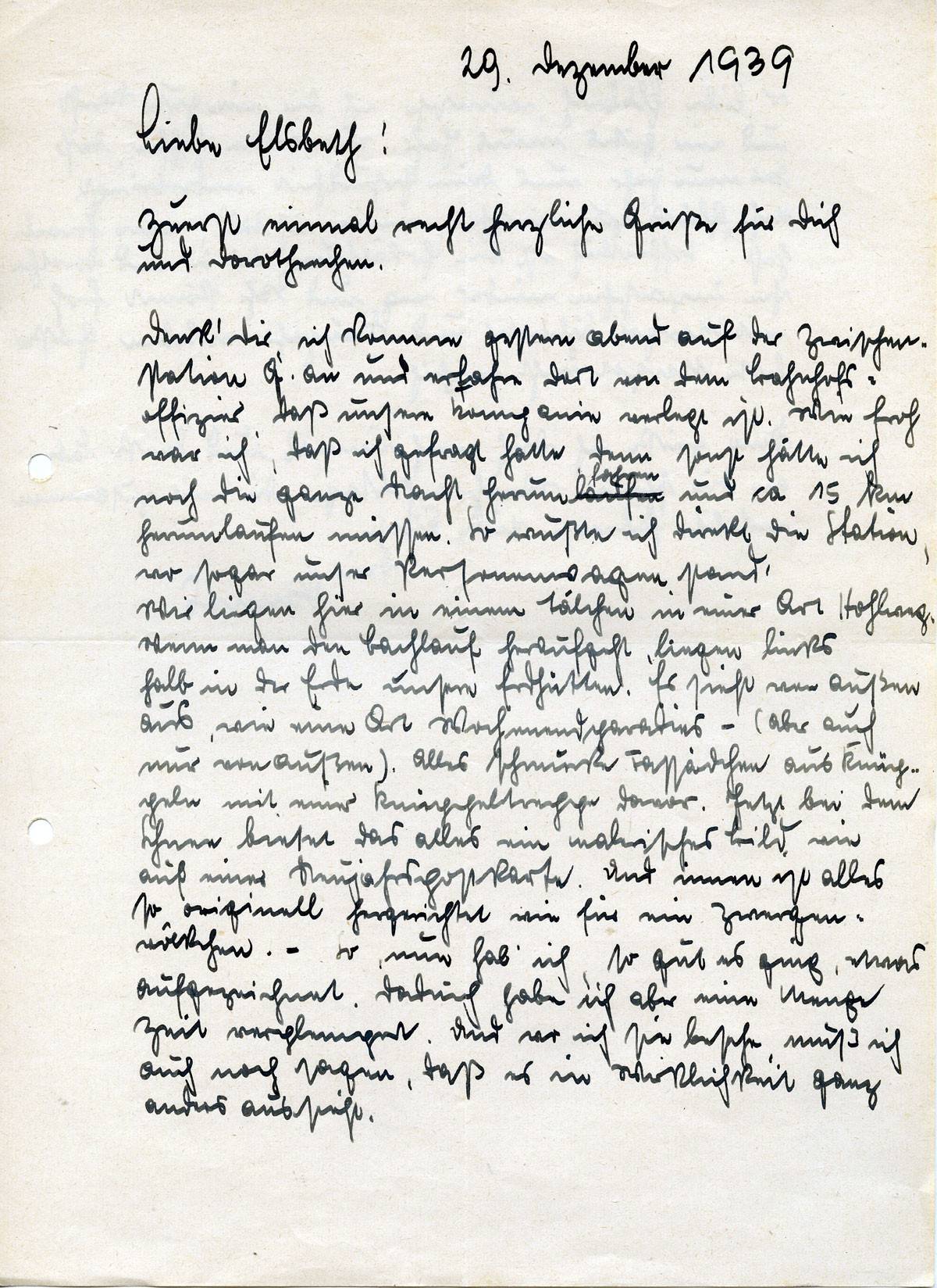 Johannes Ließem an seine Frau Elsbeth, 29. Dezember 1939