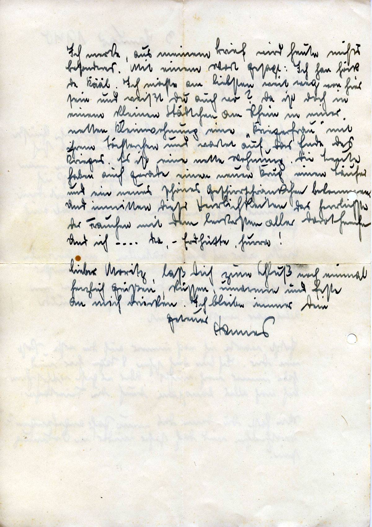Lieber Moritz, laß Dich zum Schluß noch einmal herzlich grüßen, küssen, umarmen und feste an mich drücken. Ich bleibe immer Dein