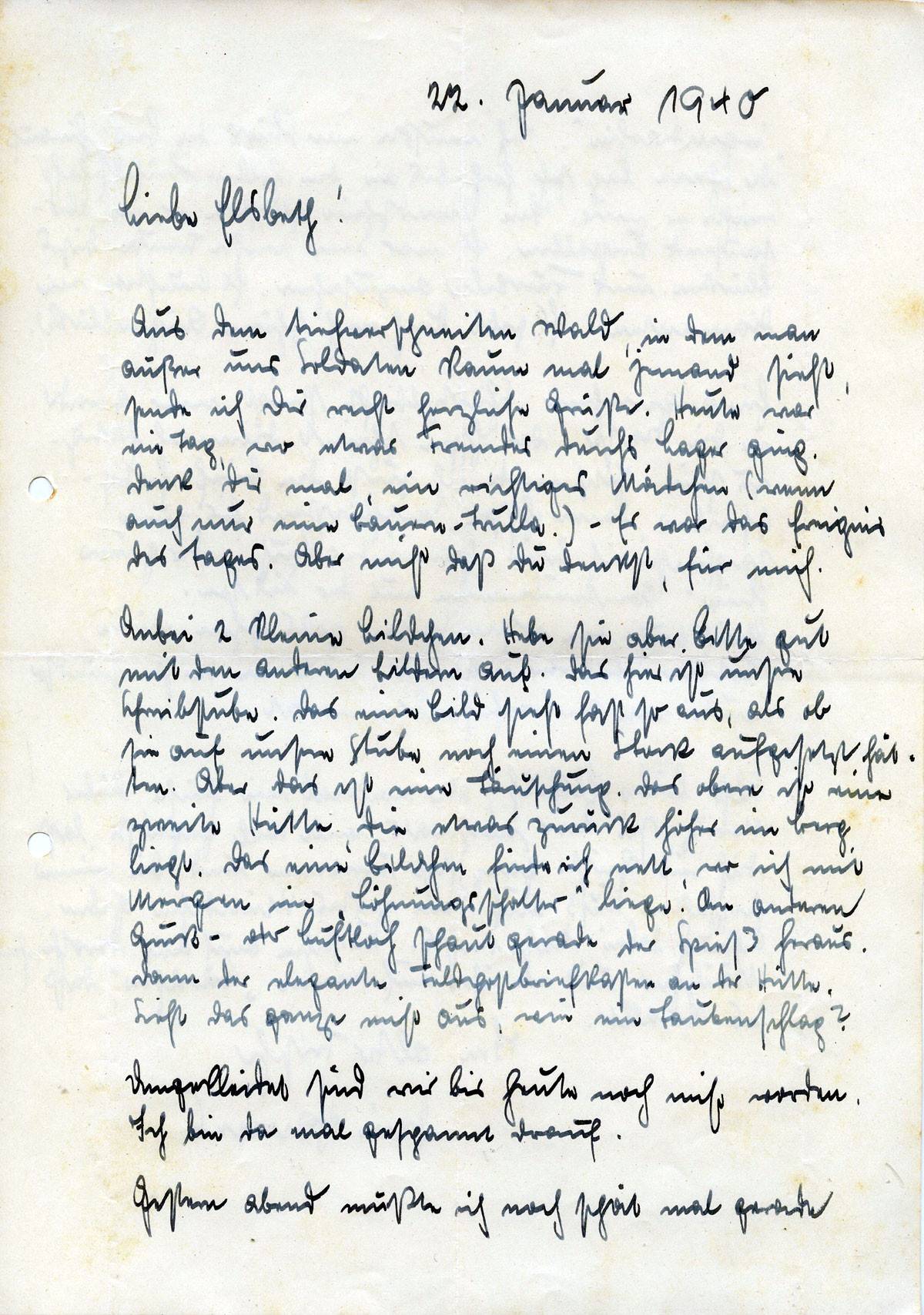 Johannes Ließem an seine Frau Elsbeth, 22. Januar 1940