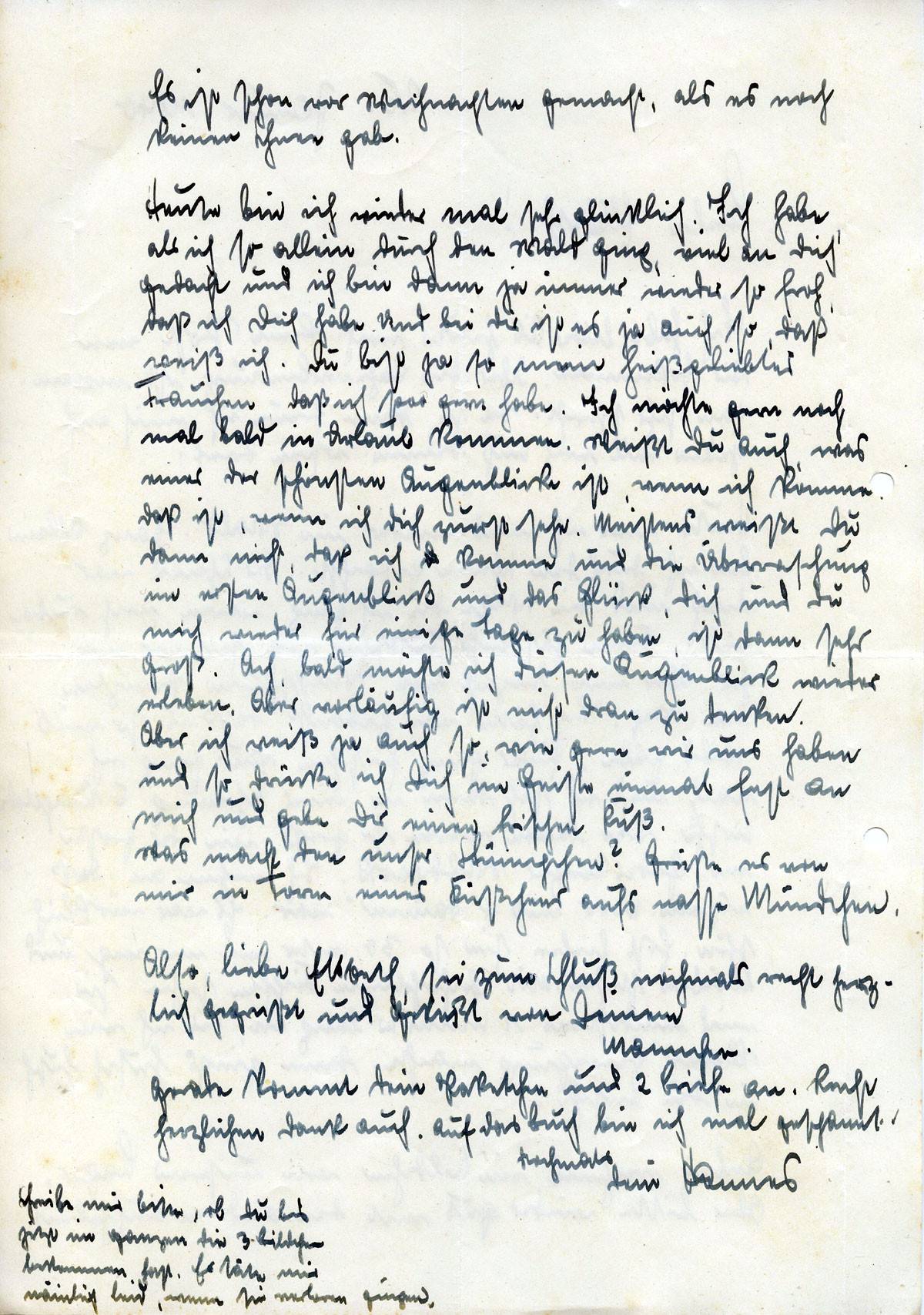 Ach, bald möchte ich diesen Augenblick wieder erleben. Aber vorläufig ist nicht dran zu denken. Aber ich weiß ja auch so, wie gern wir uns haben und so drücke ich Dich im Geiste einmal fest an mich und gebe Dir einen frischen Kuß.
