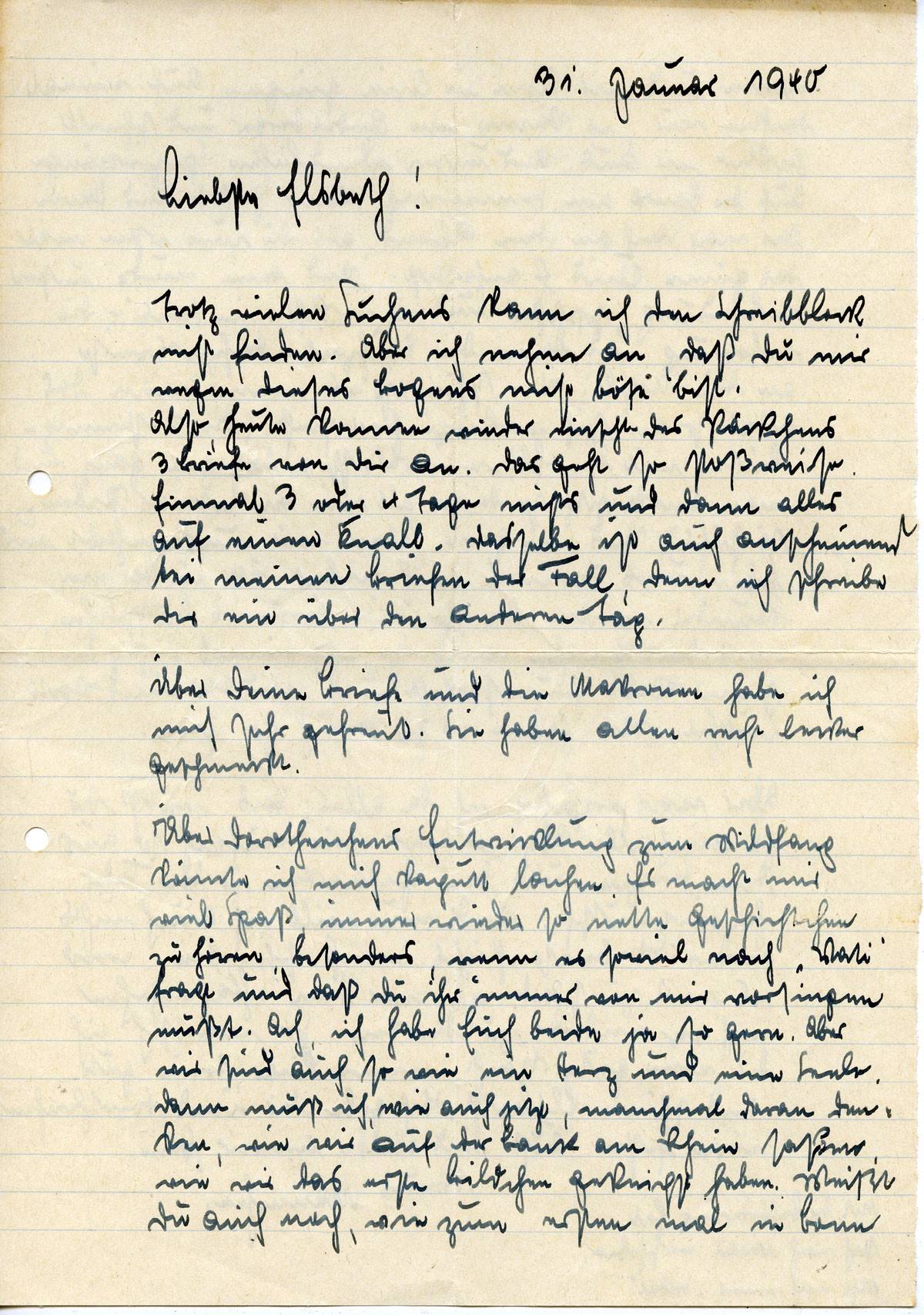 Johannes Ließem an seine Frau Elsbeth, 31. Januar 1940