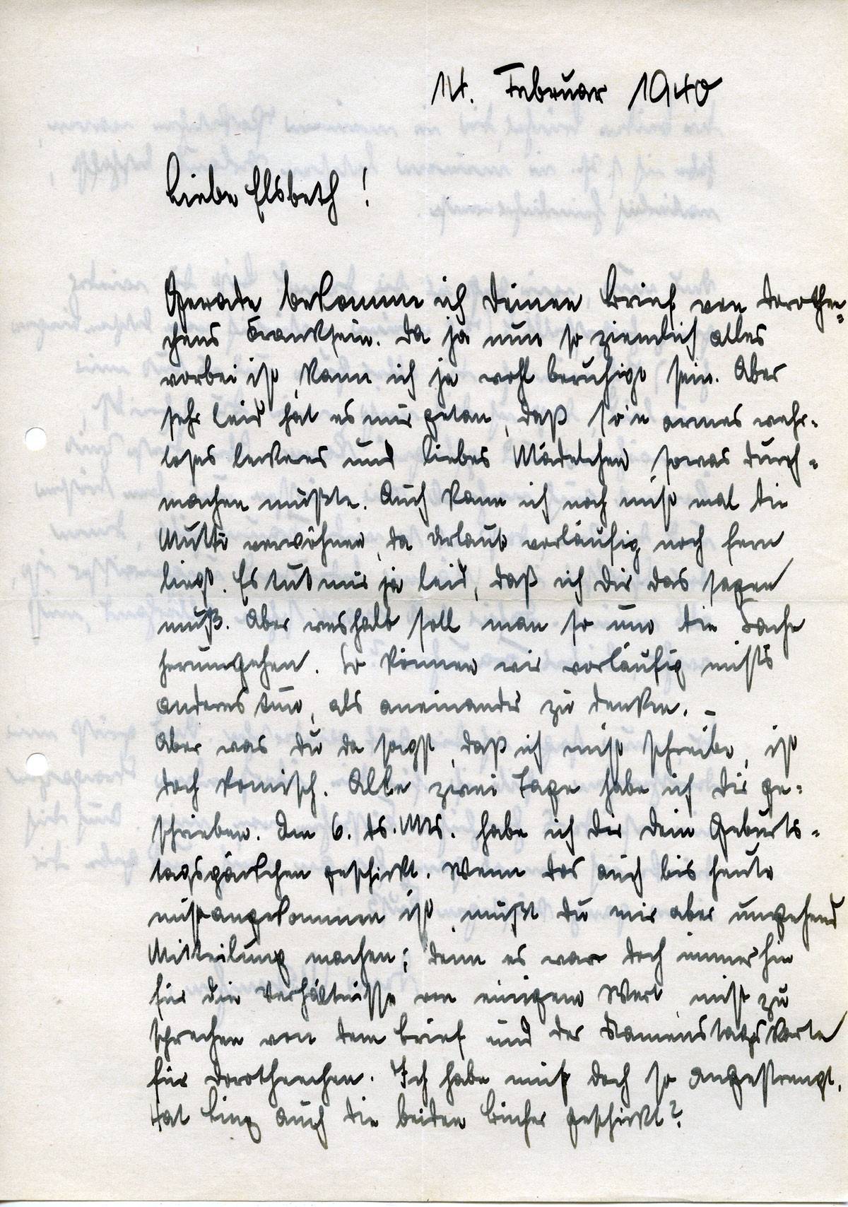 Johannes Ließem an seine Frau Elsbeth, 14. Februar 1940