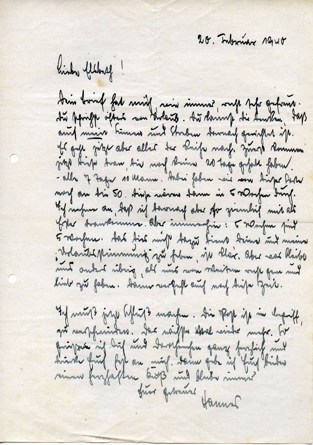 Johannes Ließem an seine Frau Elsbeth, 20. Februar 1940