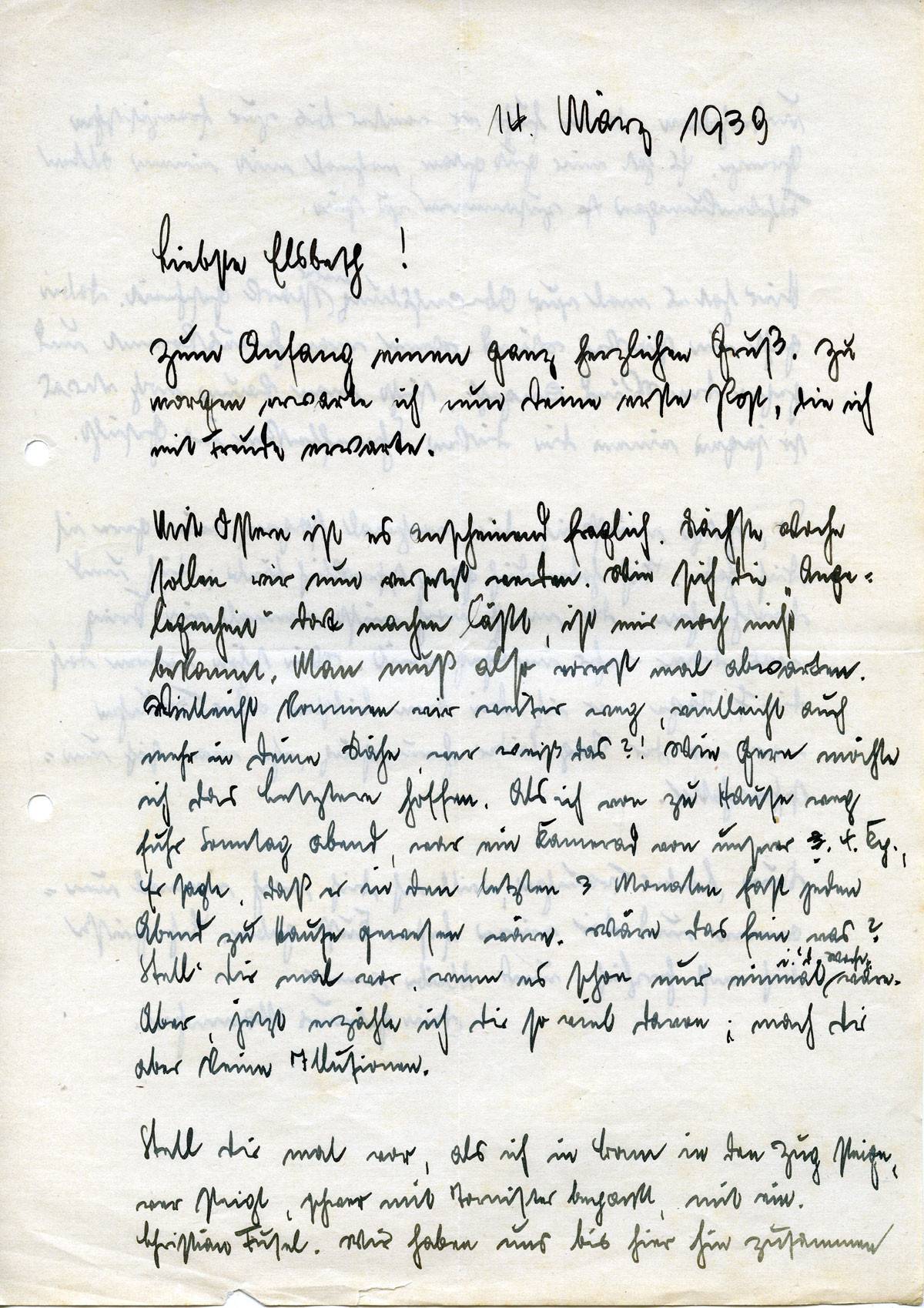 Johannes Ließem an seine Frau Elsbeth, 14. März 1940
