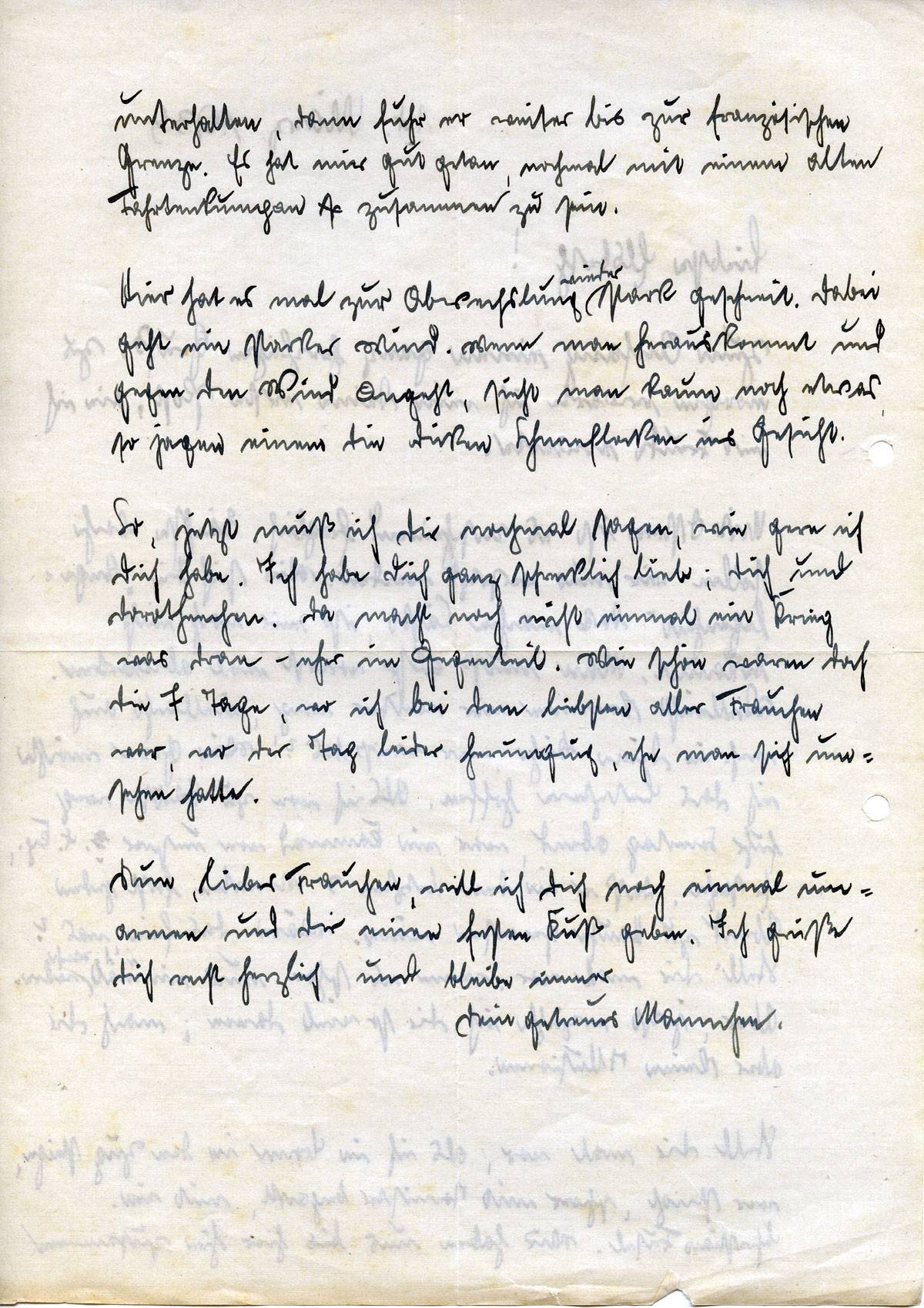 So, jetzt muß ich Dir noch mal sagen, wie gern ich Dich habe. Ich habe dich ganz schrecklich lieb; Dich und Dorotheechen. Da macht noch nicht einmal ein Krieg was dran — eher im Gegenteil. Wie schön waren doch die 7 Tage, wo ich bei dem liebsten aller Frauchen war, wo der Tag leider herumging, ehe man sich umgesehen hatte.