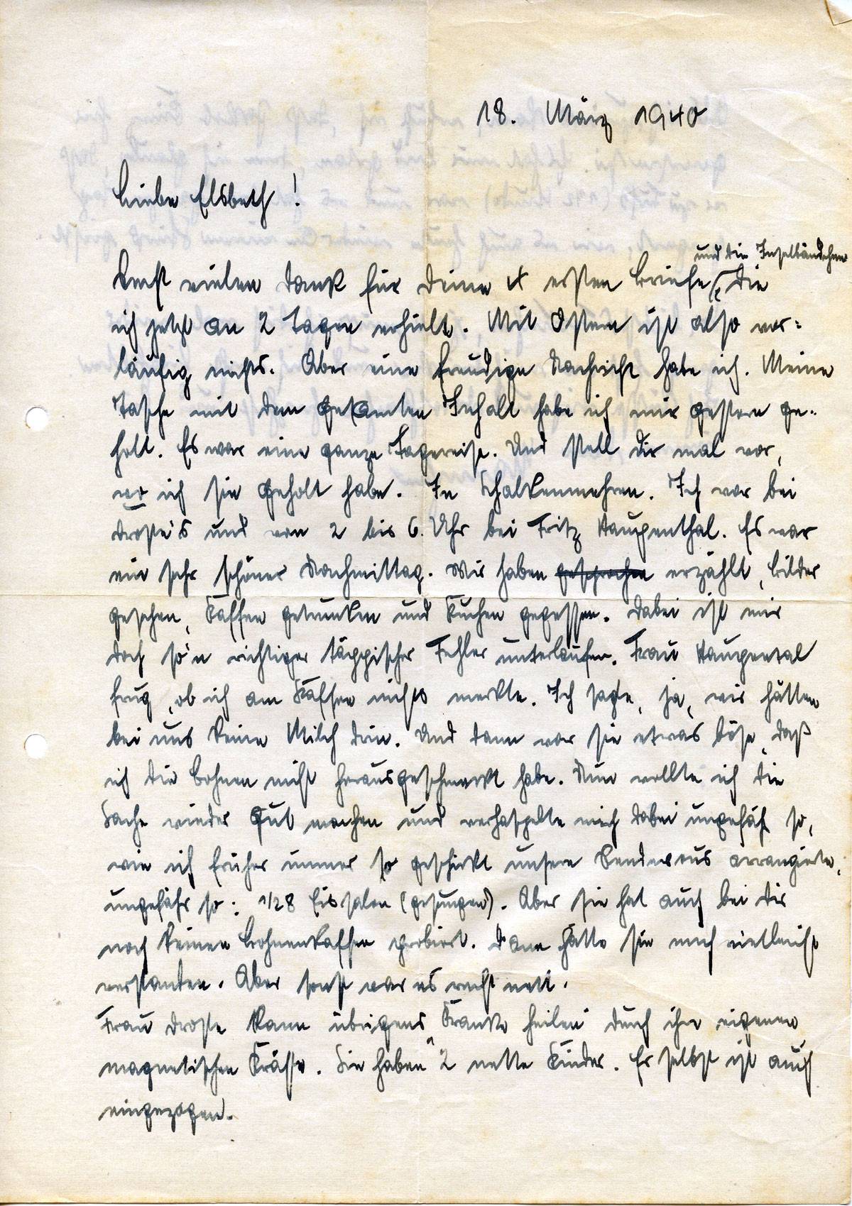 Johannes Ließem an seine Frau Elsbeth, 18. März 1940
