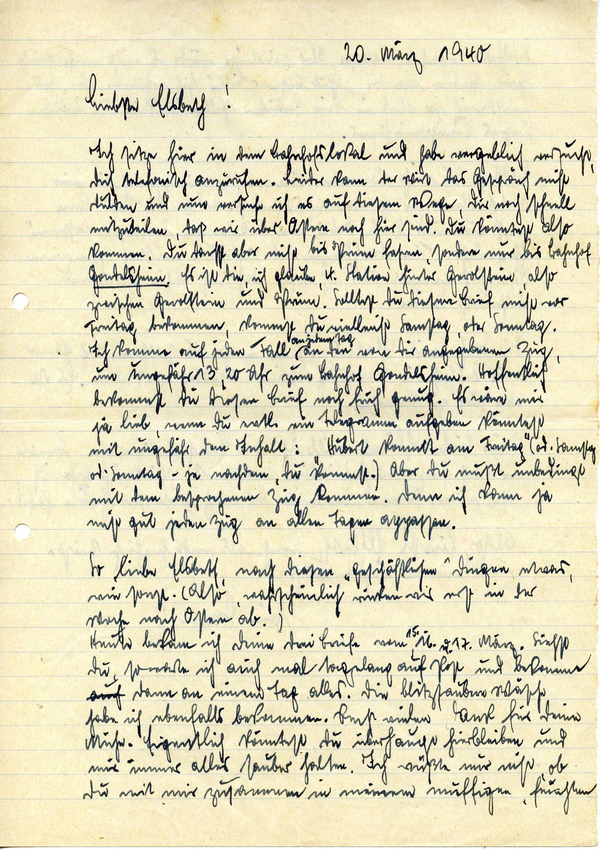 Johannes Ließem an seine Frau Elsbeth, 20. März 1940