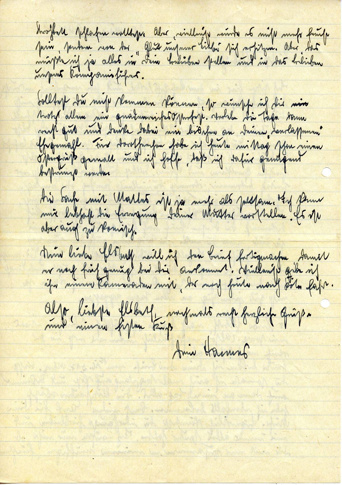 Also, liebste Elsbeth, nochmals recht herzliche Grüße und einen festen Kuß